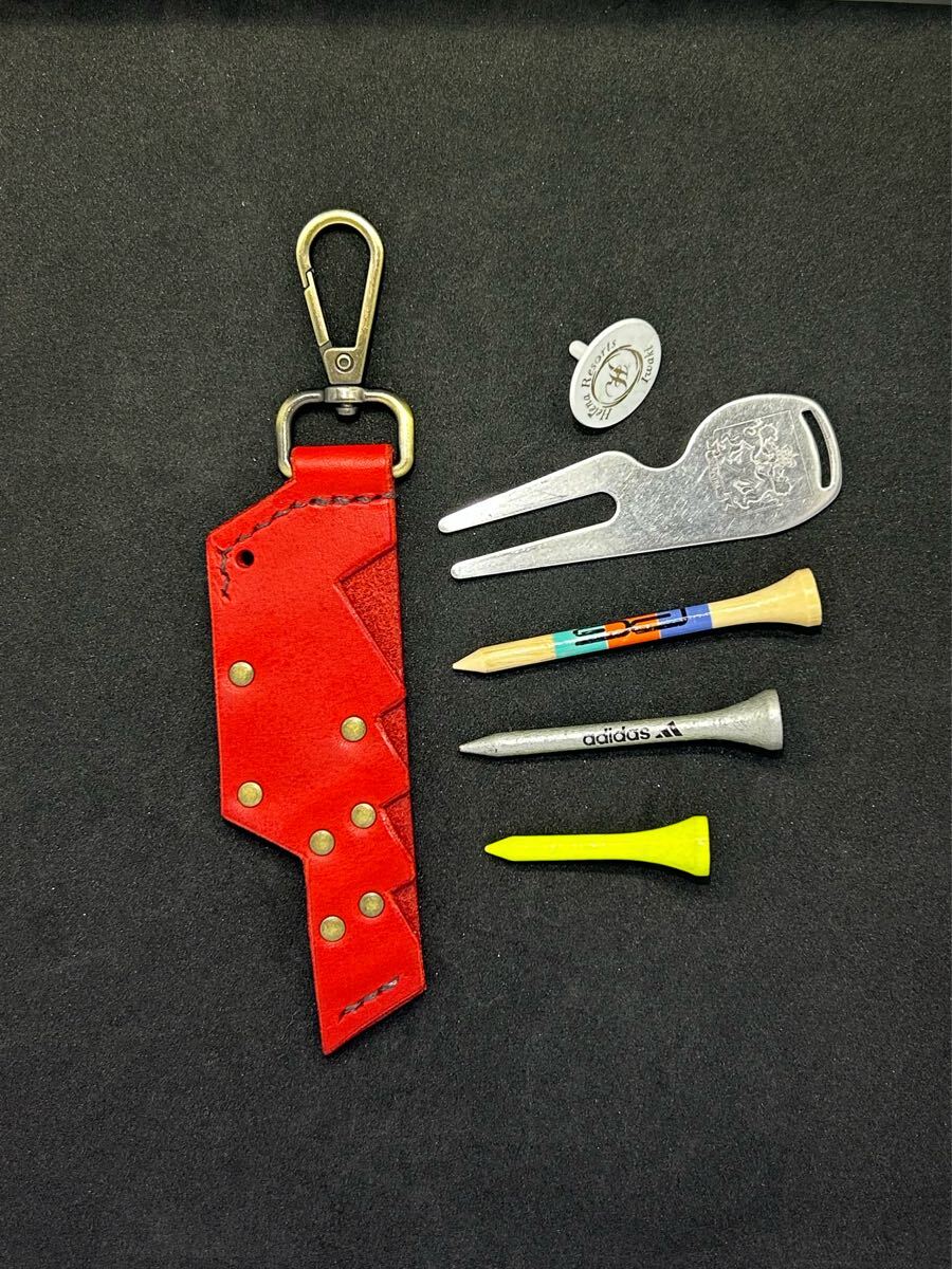 ハンドメイド(手作り)のゴルフティー・ゴルフボールマーカー・グリーンフォークのホルダーケースです。
