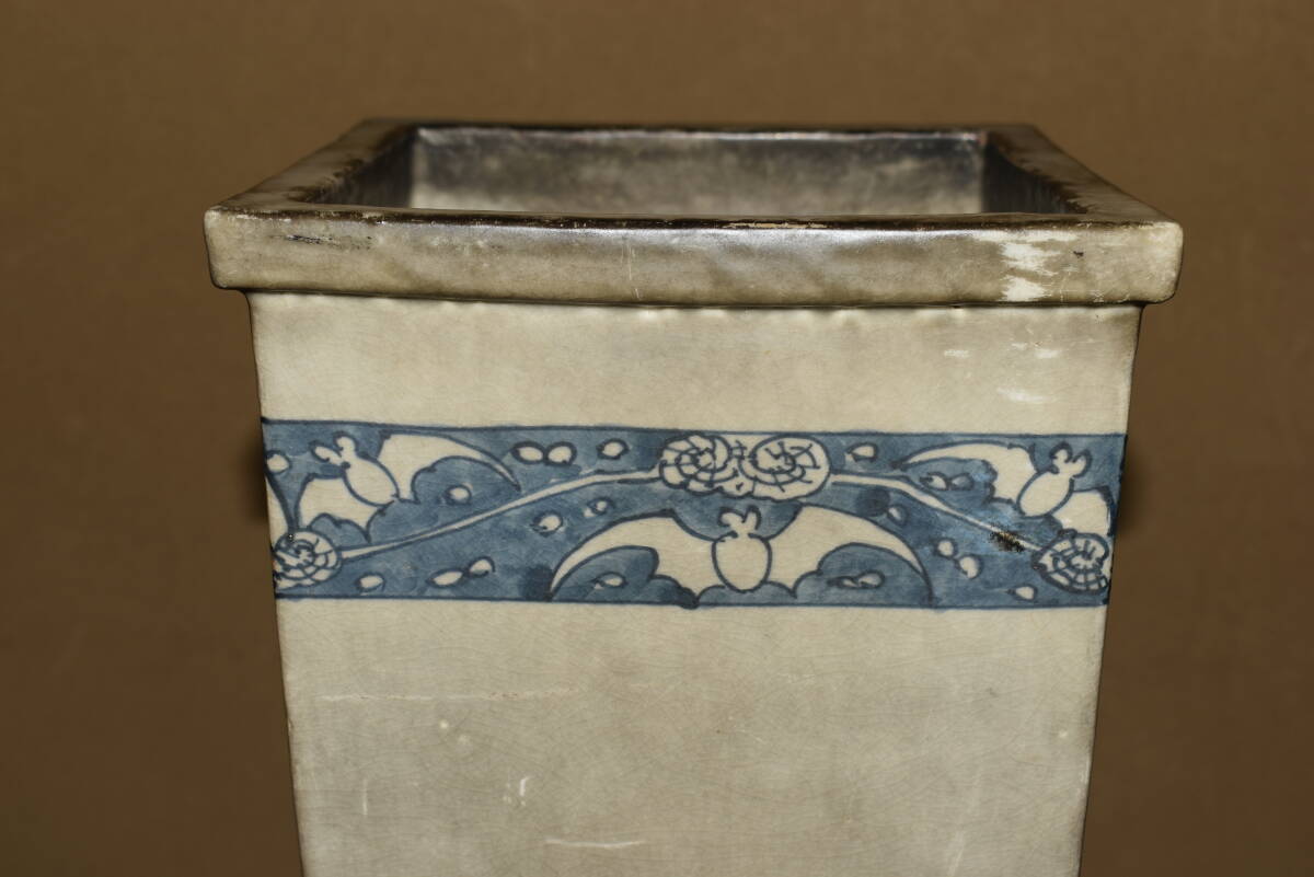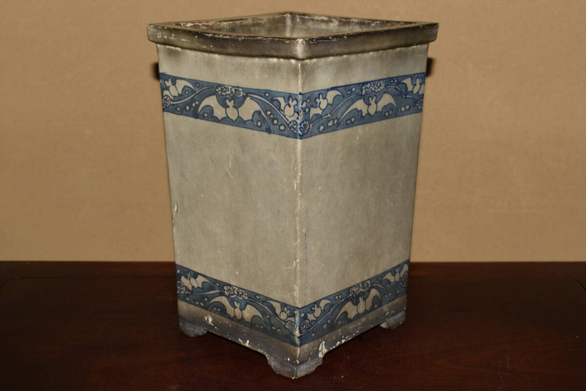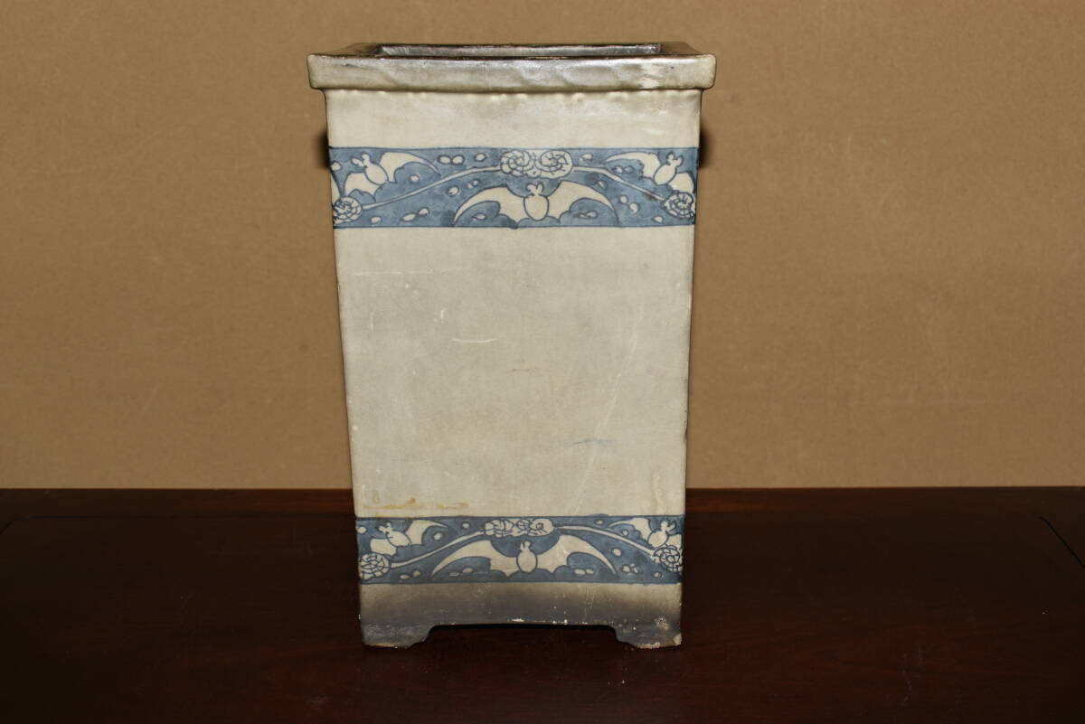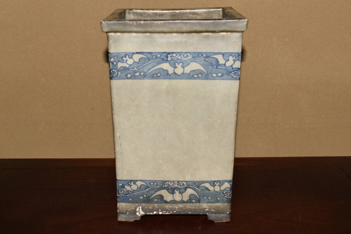 サイズ18,8x18,3x29,2cm 人気古窯作家<古常滑・白釉・染付蝙蝠図・繊細画・時代乗り抜群・使い頃サイズ>外縁正方鉢・蘭鉢のご紹介です・・・100年前後経過した作、 古窯。時代抜群・・染付の蝙蝠図が繊細に描き込まれ、実用にも優れた素晴らしい逸品です・目立つ傷はありません。足に極小さなホツ等有、穴に窯有・・ 大変古い物ですので縁・足等にホツ・スジ・カケ等がある場合がございます。 状態を良くご確認の上、ご入札宜しくお願い致します。。画像を良くご確認の上、御入札宜しくお願い致します。完品をお求めの方は入札をお控えお願い致します。*注意事項* オークション終了後48時間以内に必ずご連絡をお願いします。ご連絡がない時は、ご購入意思がないと判断し、落札者さま都合のキャンセルとさせて頂きます。再三のご連絡を差し上げても、ご連絡がない場合は、時点繰り上げとさせて頂きます。マイナス評価の多い方や新規の方を削除する場合がありますので、ご了承下さい。また、入札価格が低価格の場合は取消終了とさせて頂く場合がございますので、ご了承願います。古い物等ございますので小さな傷等は、見落とす場合がございますので、写真を良くご覧になり納得の上ご入札して下さい。また、完品をお求めの方は入札をお控えお願い致します。キズ・破損等のご連絡は商品到着5日以内にご連絡ください。それ以降は対応致しかねますので到着後、商品を必ずご確認ください。輸送中の事故(鉢が割れる、枝が折れる等)につきましては商品到着時に確認し取引ナビまたは、お電話にてご連絡下さい。 基本土日の発送は行っておりません。ご了承ください。