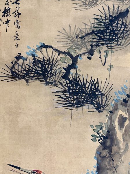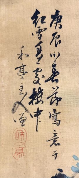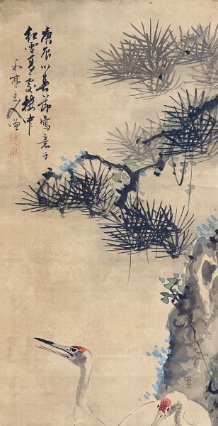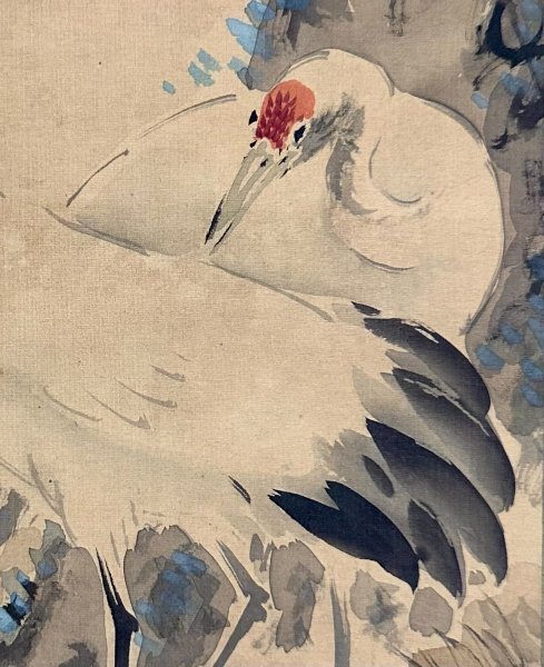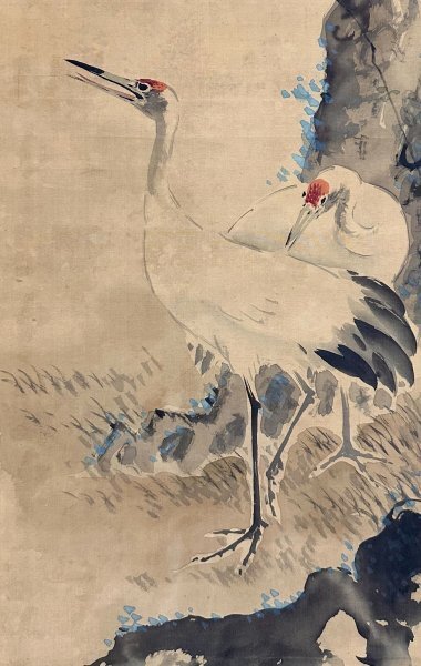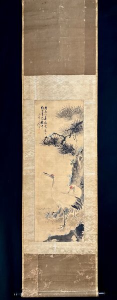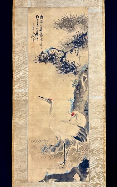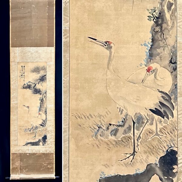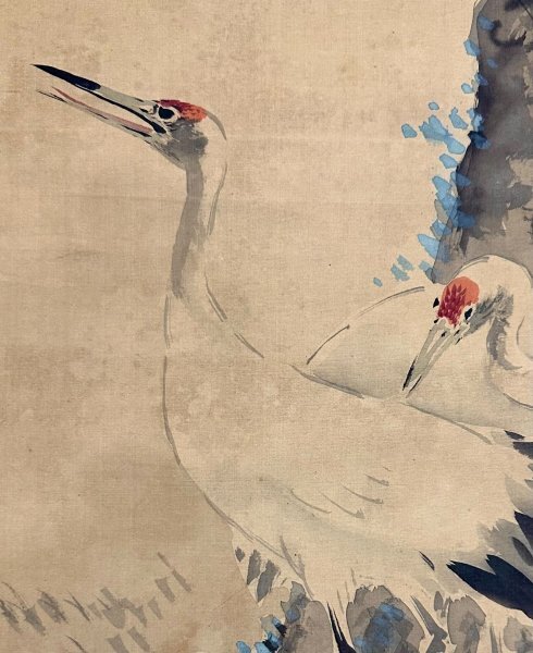 k101H09【真作】滝和亭「双鶴之図」掛軸 絹本 肉筆 花鳥図 鳥獣 南画家 鉄翁祖門に師事 東京の人