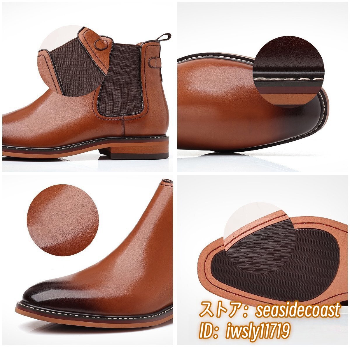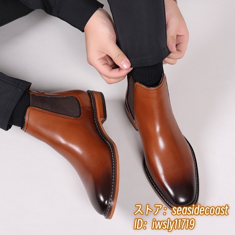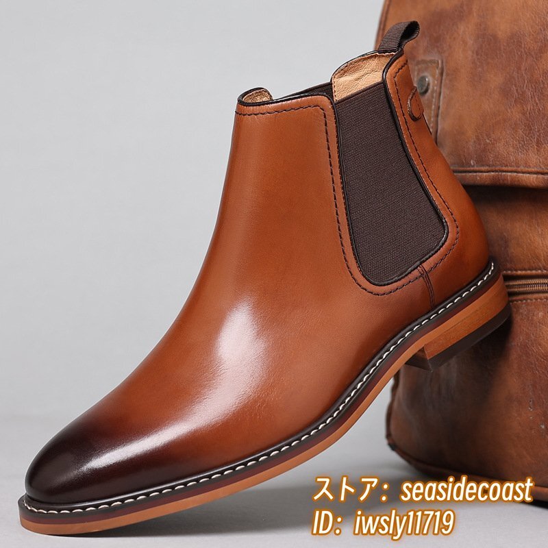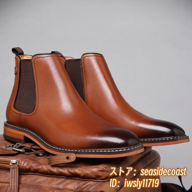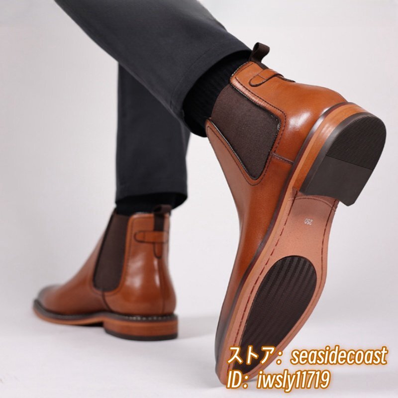 新品◆高級牛革 マーティンブーツ 本革 レザーシューズ ショートブーツ 紳士 ビジネスシューズ ハイカット トップレイヤー ブラウン 24.5cm