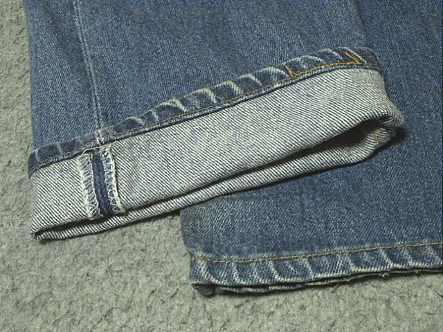 ・スモールe両面タブ  ・裾はシングルステッチで裾上げ済 ・尻ポケットは閂 ・赤耳生地では有りません