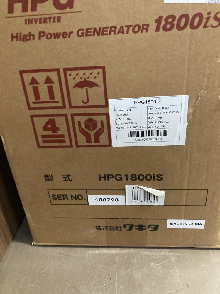 ワキタ ■商品名 インバーター発電機 ■型番 HPG1800is |