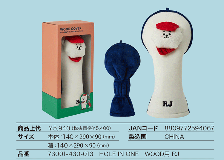 【商品特徴】 <BT21ゴルフアイテム 「ホールインワン」シリーズ!> ■キャディバッグに注目を集めるスペシャルアイテム 愛らしいBT21の仲間たちが、成功したラウンディングをいつでもお祝いしてくれます。 ■シンプルかつ洗練されたシルエット 柔らかいポリエステル素材で、外部からの衝撃からクラブをしっかり保護します。 【商品詳細】 ●状態:新品・未使用品 ●材質:ポリエステル ●タイプ:フェアウェイウッド用 ●サイズ:140×290×90mm ※特殊なヘッド形状の場合は、装着できないことがございます。 ※撮影時の光量の具合や、ご覧いただいております画面環境によりまして、実際の商品と若干色味が違う場合がございます。 ※商品詳細のスペック値はメーカー表記の数値となりますが、個体差による若干の公差がございます。