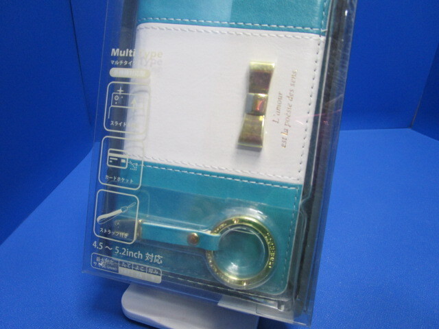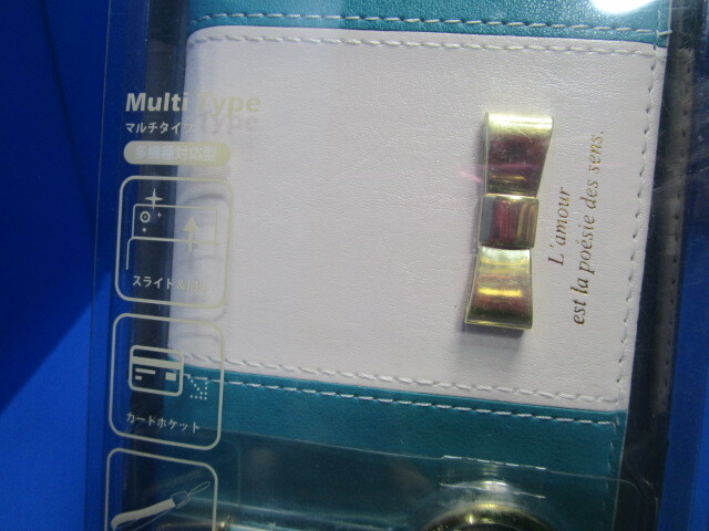 Natural Design マルチタイプ 手帳型 ケース ターコイズ リボン 約4.7〜5.2インチ iPhoneSE(第3・2世代) iPhone8 iPhone7 等 ★