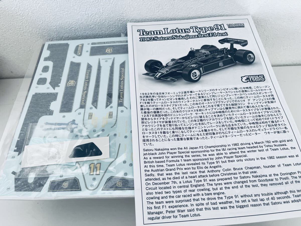 【送料無料】1/20 EBBRO Team Lotus Type ロータス 91 中嶋悟 First F1 Testです。