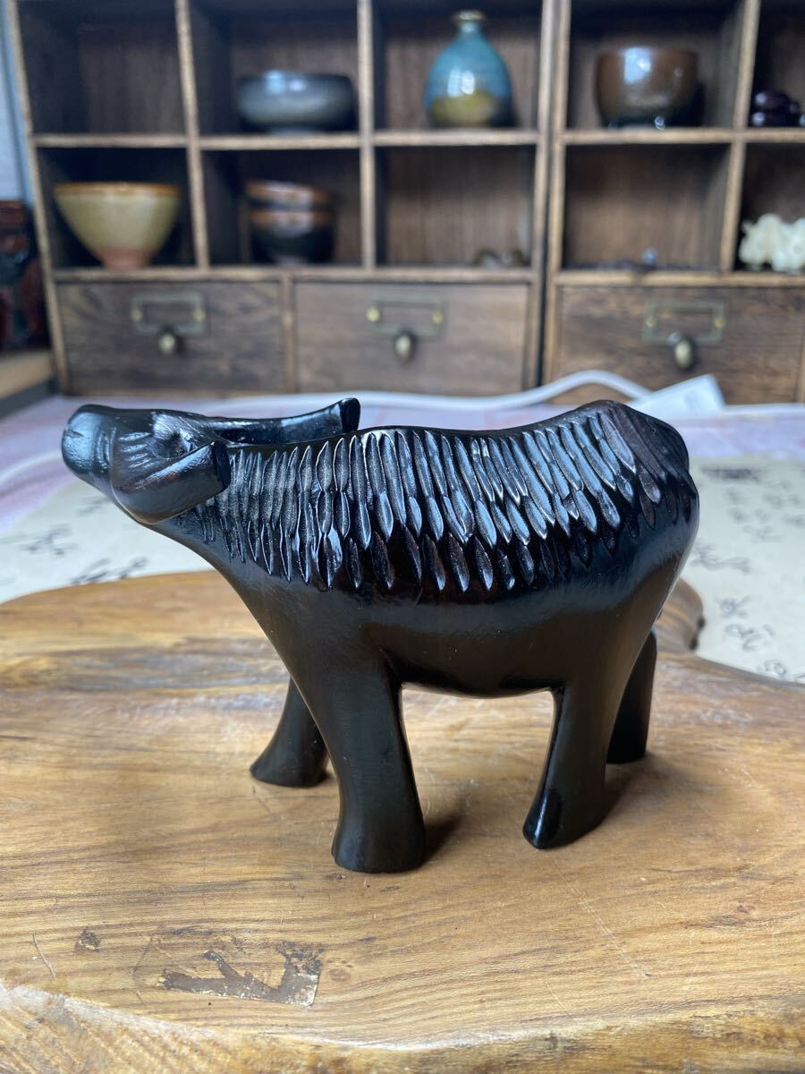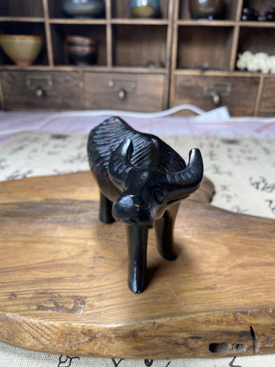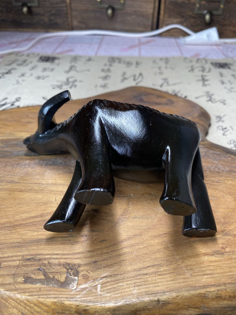 一刀彫 牛 うし 木彫り 置物 インテリア オブジェ 縁起物