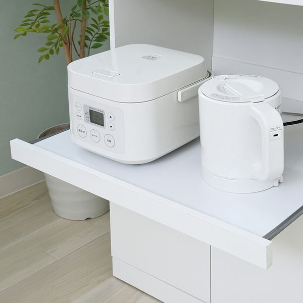 シンプルなSIMシリーズのレンジ台。 キッチン家電も食器も一気に収納。 上部ガラス扉内にオシャレな食器を収納すれば、見せる収納が出来ます。 |