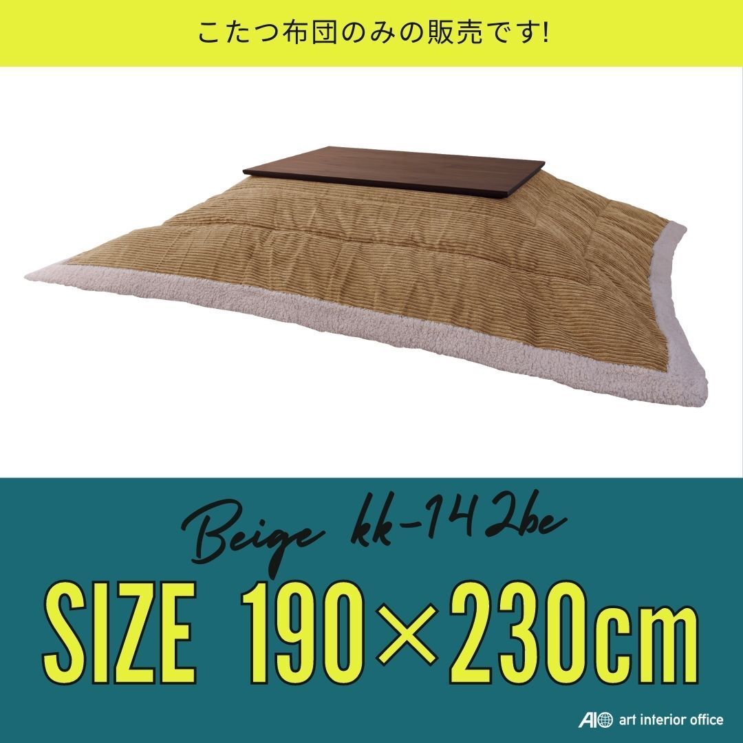 | 商品名 | こたつ布団 長方形 ベージュ 190×230センチ 防寒 シープボア こたつ用品 薄掛け こたつ掛け布団 コタツ布団 コタツ ※天板サイズ120×80対応 おしゃれ KK-142BE |