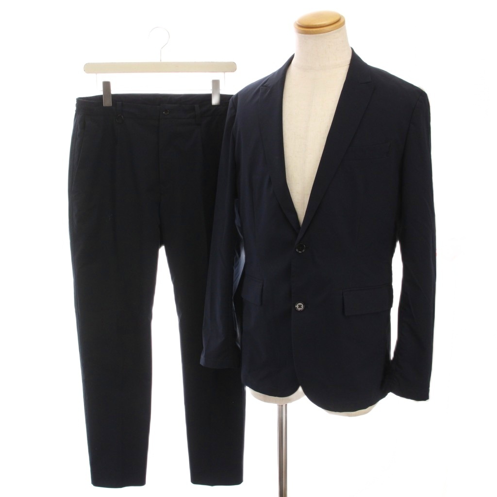 ナノユニバース ダメリーノ SOLOTEX フランネルセットアップ 上下 シングルスーツ テーラードジャケット パンツ L ネイビー 668-0218001