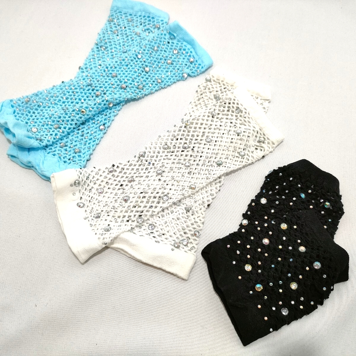 【★送料無料★ラインストーン付きメッシュアームグローブ★ 3点セット★ 】の出品です。