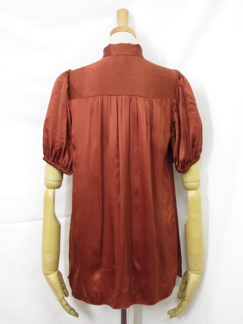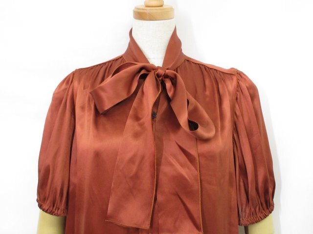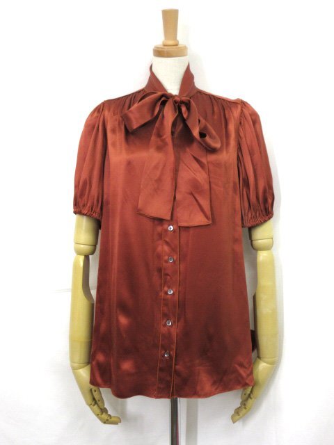 【ドルチェ&ガッバーナ DOLCE&GABBANA】微光沢 半袖 ボウタイブラウス シャツ (レディース) オレンジブラウン系 伊製 ◇17LK2518◇
