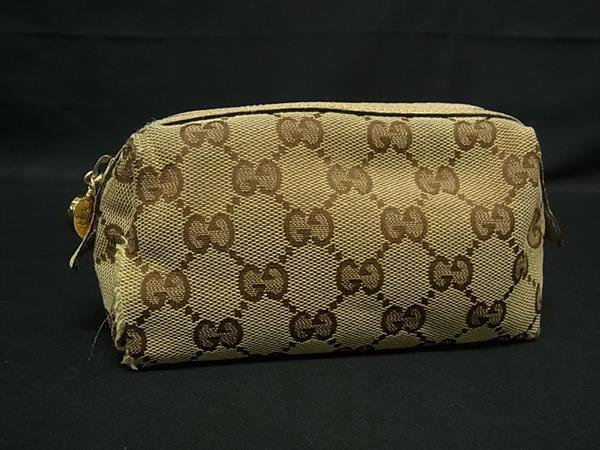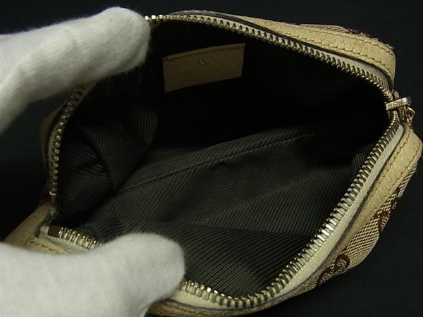 1円 GUCCI グッチ 153228 2888 GG柄 GGキャンバス×レザー マルチポーチ マルチケース メイクポーチ レディース ベージュ系 FT1359