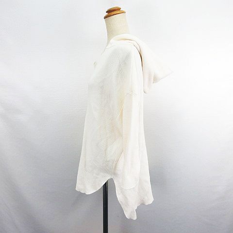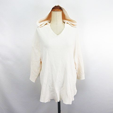 アズールバイマウジー パーカー トップス 七分袖 ドロップショルダー プルオーバー ワッフル地 コットン M アイボリー ※EKM レディース