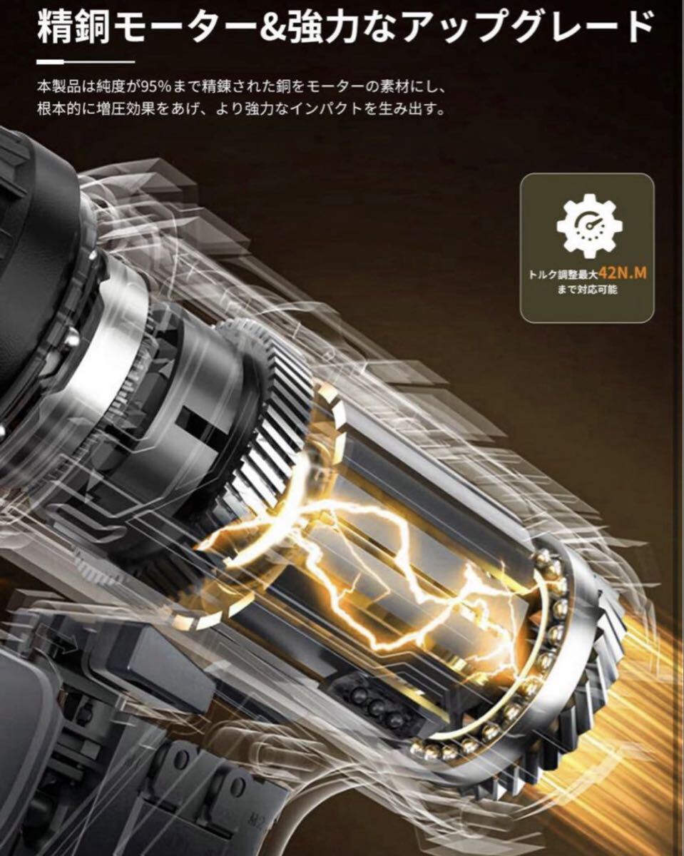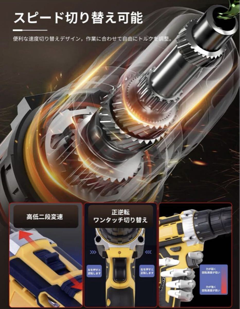 【42Nmの強力トルク&25段階調整】最大トルク42Nmと25段階のトルク調整機能を備え、回転速度は2段階(0~350RPM / 0~1650RPM)の切り替えが可能で、トリガーの押し込み具合による無段階微調整も対応しており、木材、金属、プラスチックなど多様な素材に合わせてトルクと速度を最適化し、素材を傷つけず効率的で正確な作業を実現します。
