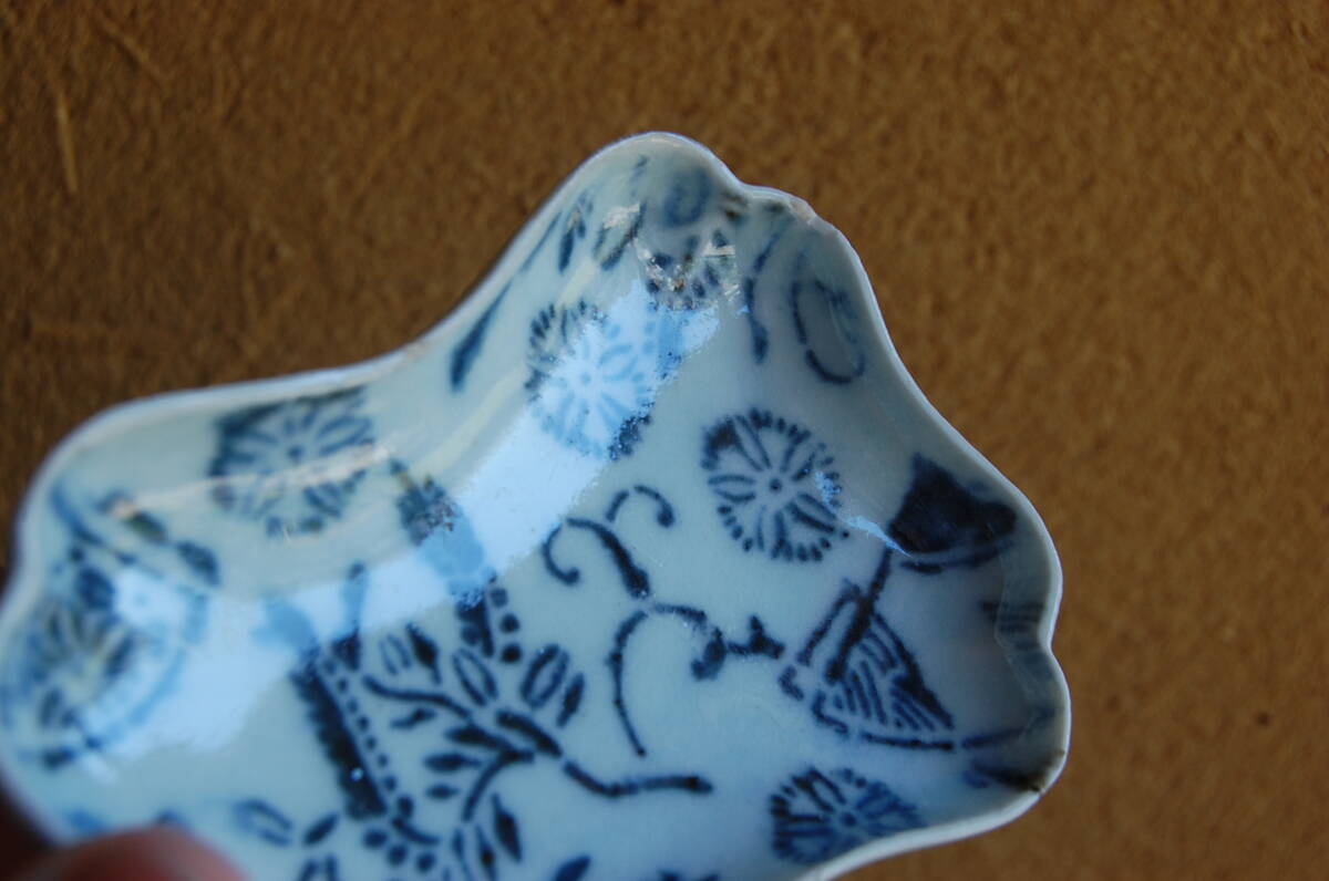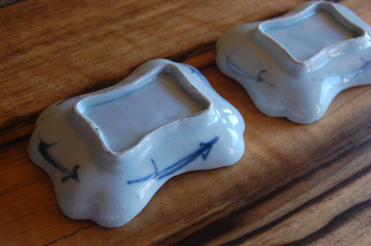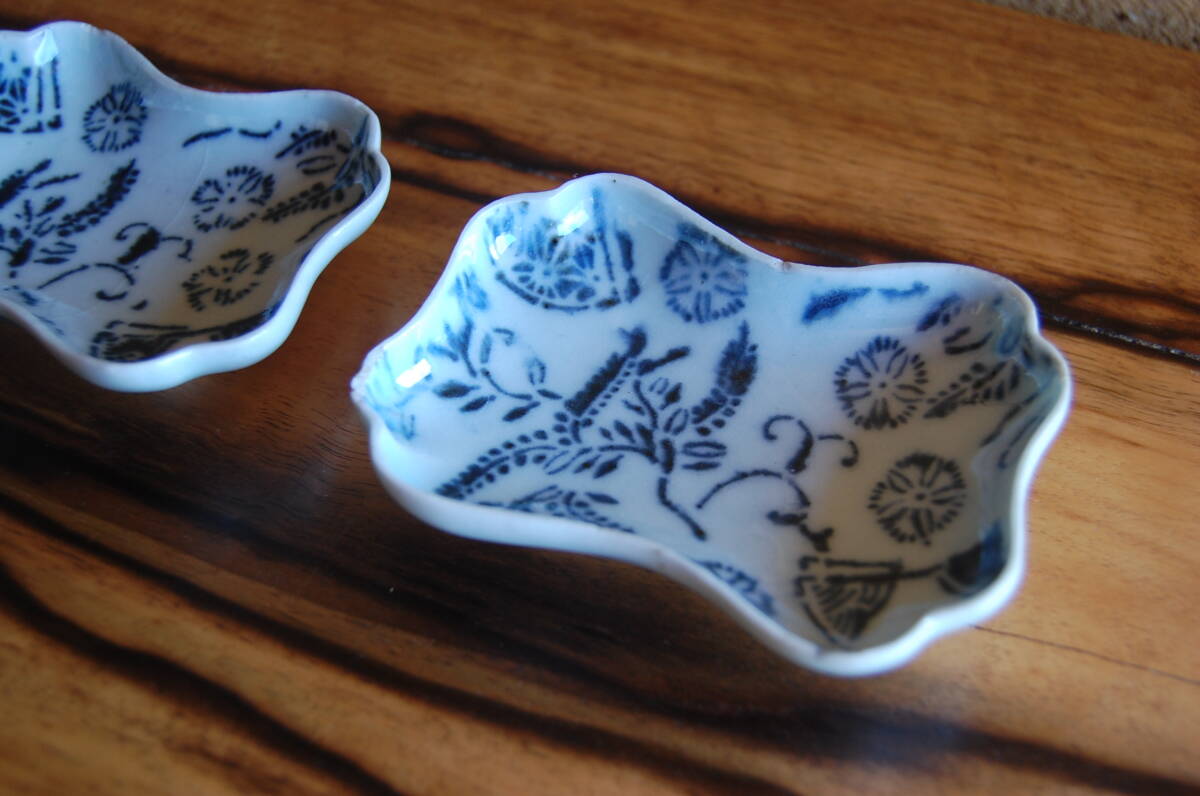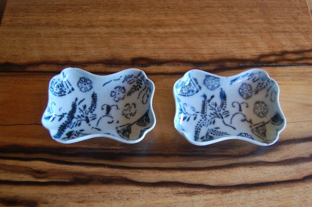 ★古伊万里 型紙摺印判糸巻き型豆皿 手塩皿 小皿(二枚)★
