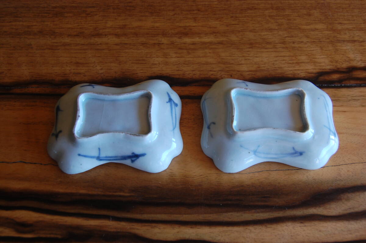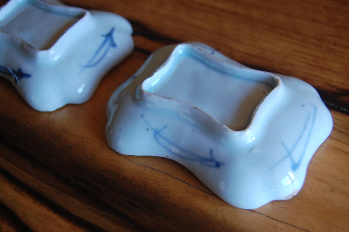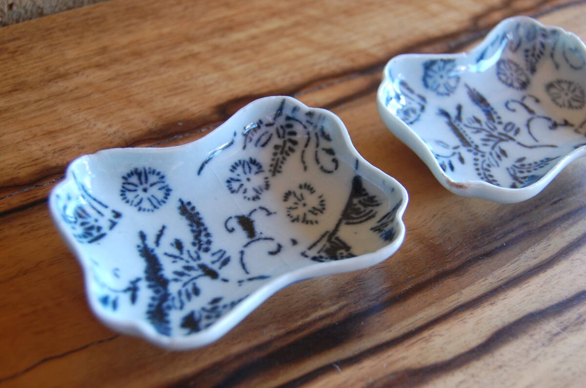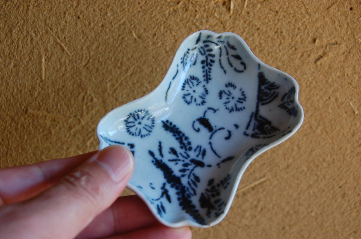 ★古伊万里 型紙摺印判糸巻き型豆皿 手塩皿 小皿(二枚)★