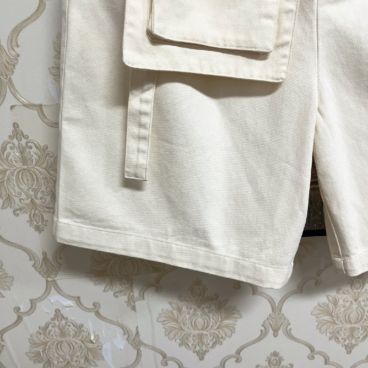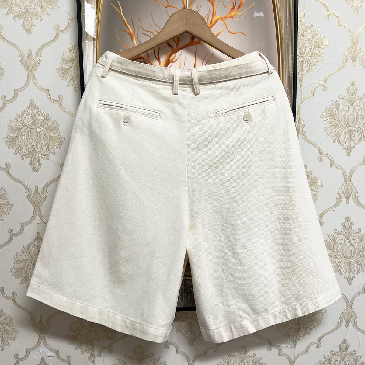 短すぎず長すぎない絶妙な丈間も魅力的で過度なタイトさを感じさせないハーフパンツ。デイリーユースで気軽に使える落ちついた大人の雰囲気を演出してくれます。 ウエストにはベルト付きで、さらにベルト部分にはポケットも付いており、実用性もファッション感抜群。また、ポケットを5つ装備しており、持ち物に便利で、収納性のある機能面を充実。