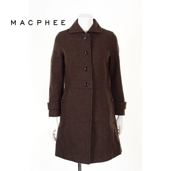 A5601/美品 秋冬 MACPHEE マカフィー トゥモローランド ウール メルトン ロング 膝丈 ワイド ステンカラーコート36程 緑 カーキ/レディース