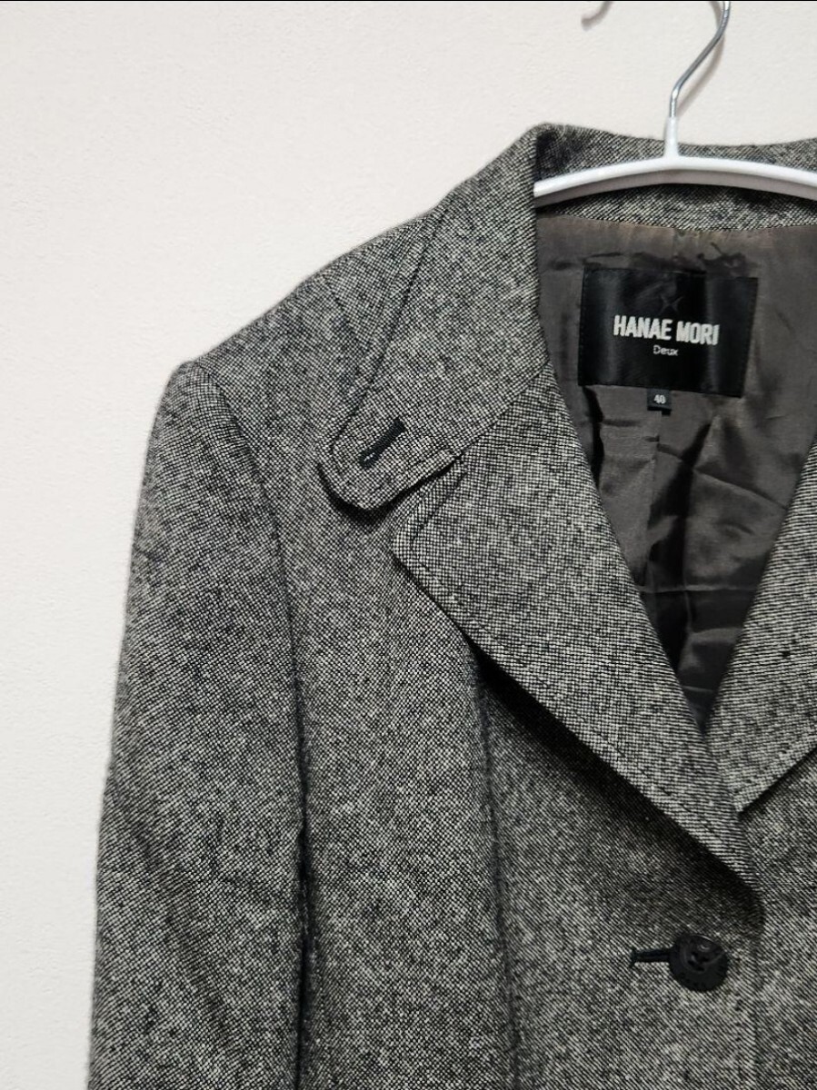 ハナエモリ レディース ジャケット Deux ウール グレー Mサイズ テーラード アウター フォーマル 通勤 通学 OL ミセス 日本製