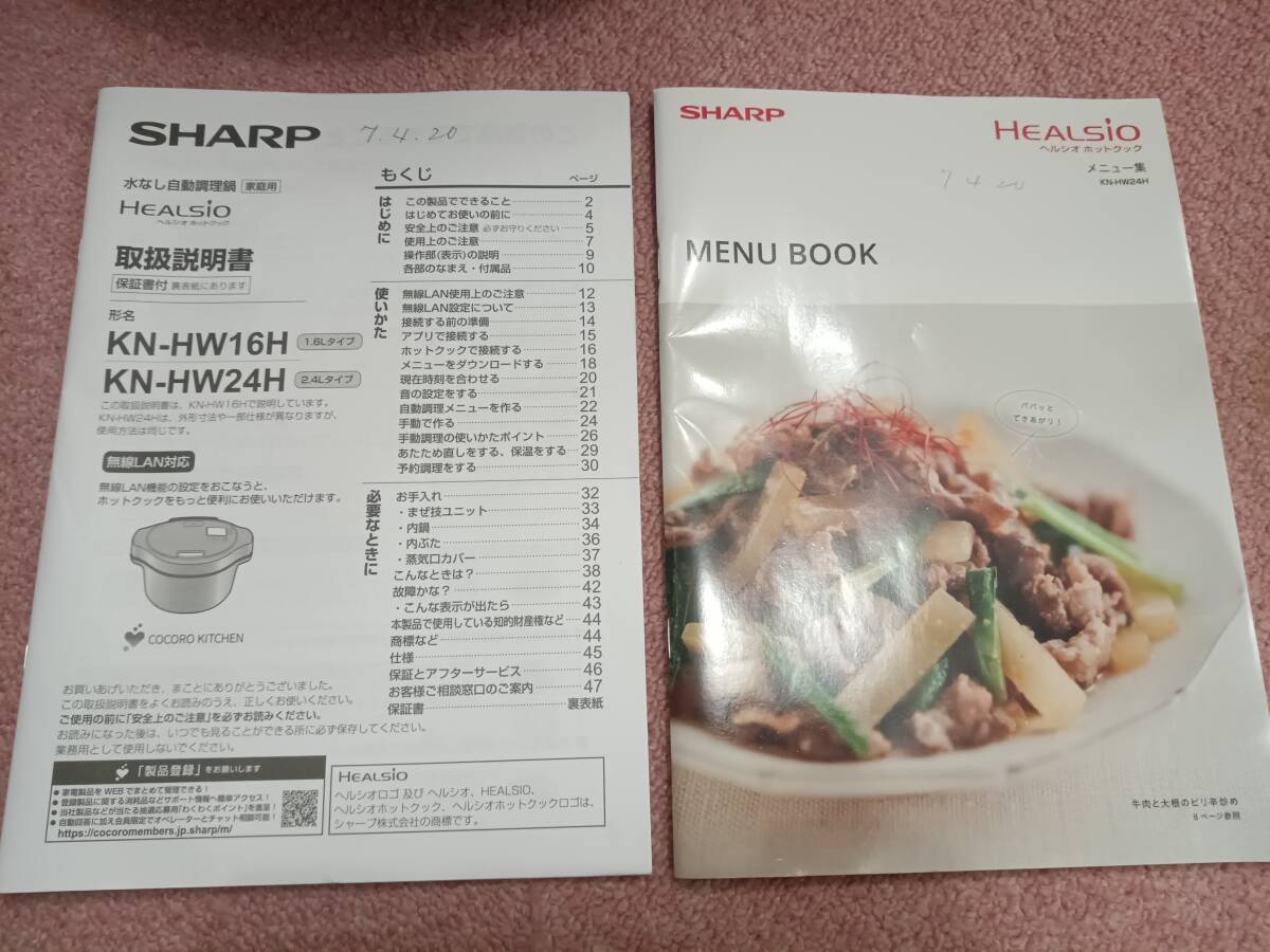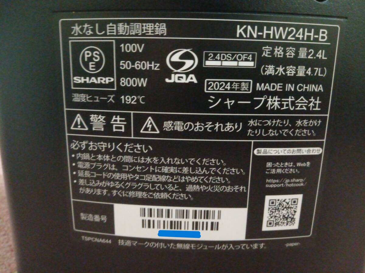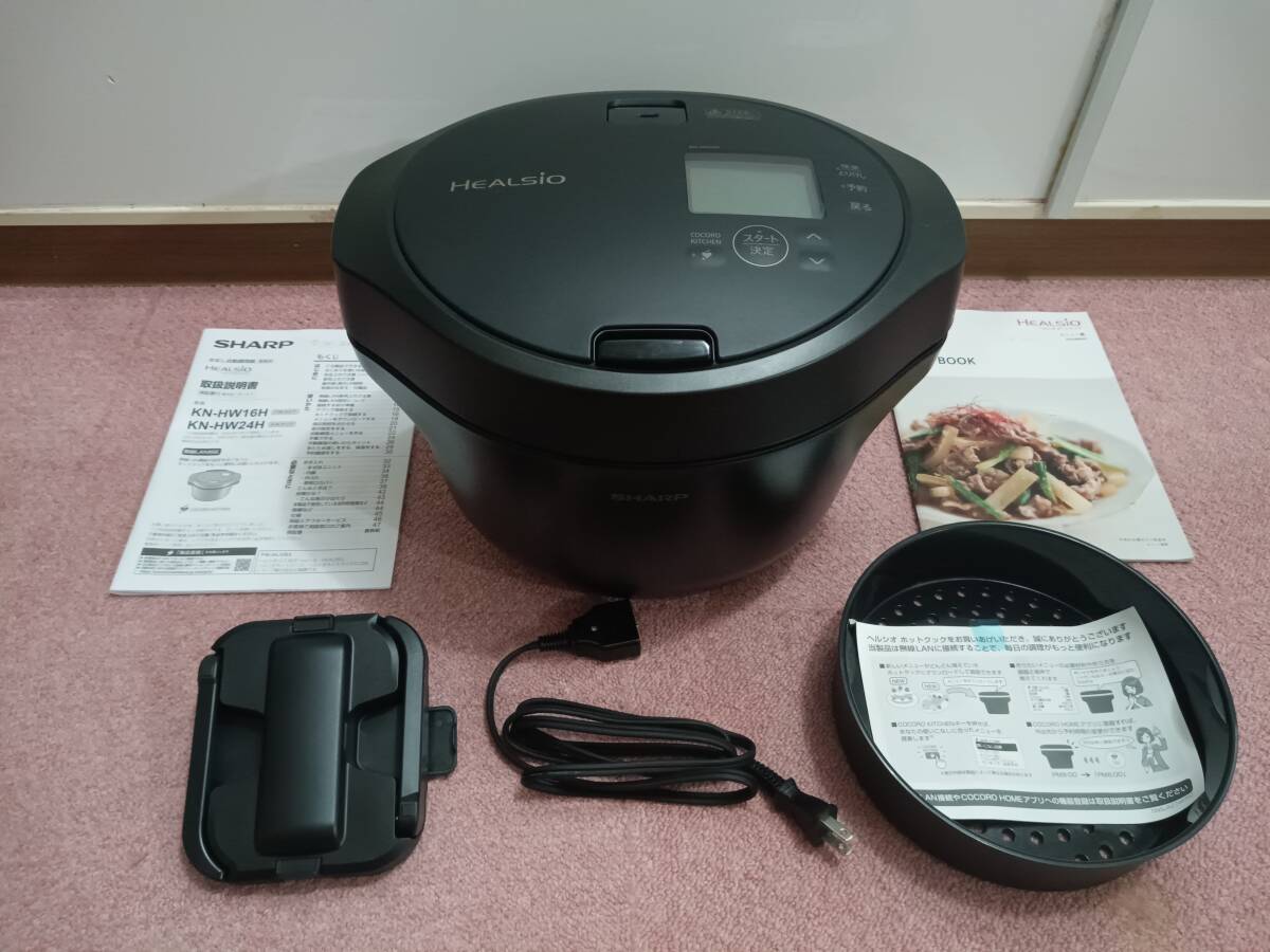 未使用 SHARP シャープ ヘルシオ ホットクック KN-HW24H-B 2024年製 取扱説明書・メニューブック付 水なし自動調理鍋 R7.4月購入
