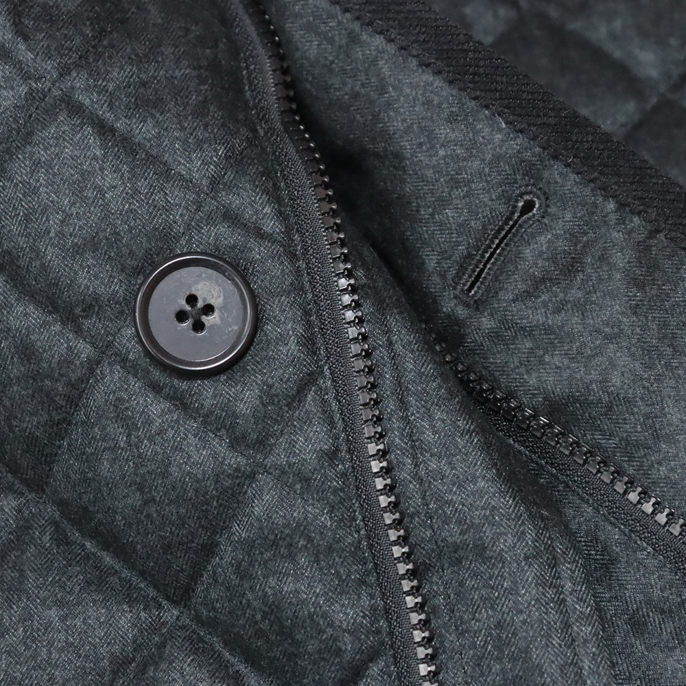 ダウンフェザーの中綿入りで、着心地は軽く暖か。ボリュームを抑えたすっきりとしたシルエットも魅力です。フロントはシングルジップとボタンの二重構造で、防風・防寒性に優れています。