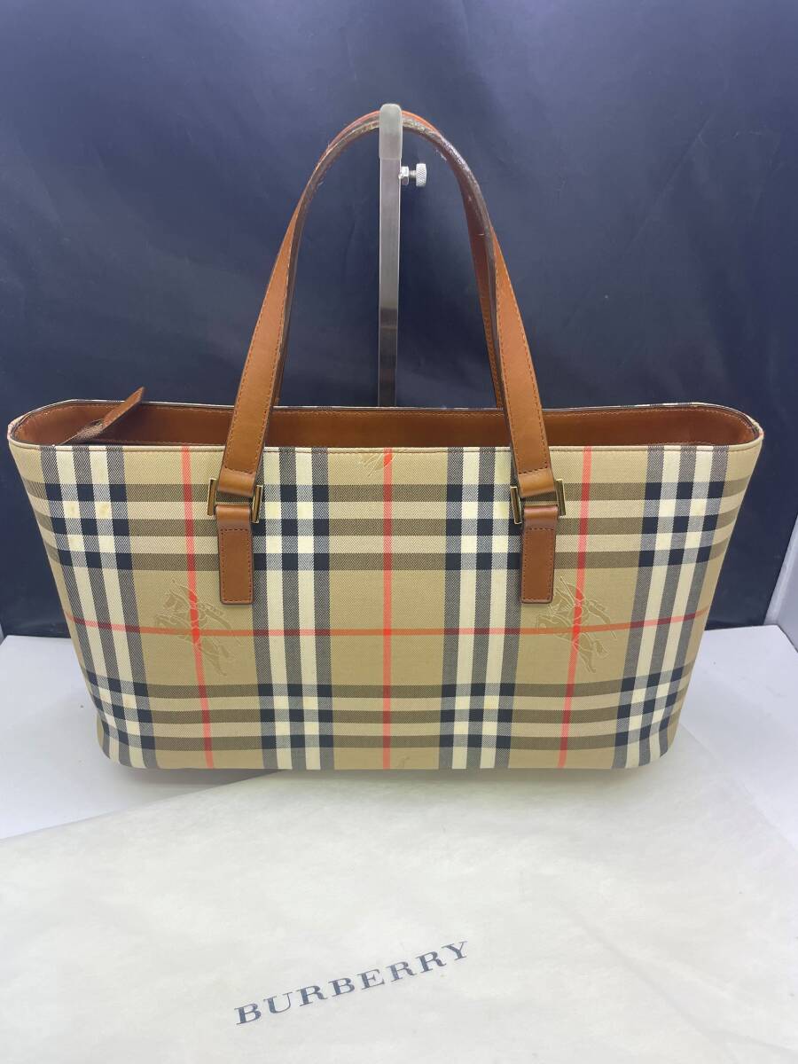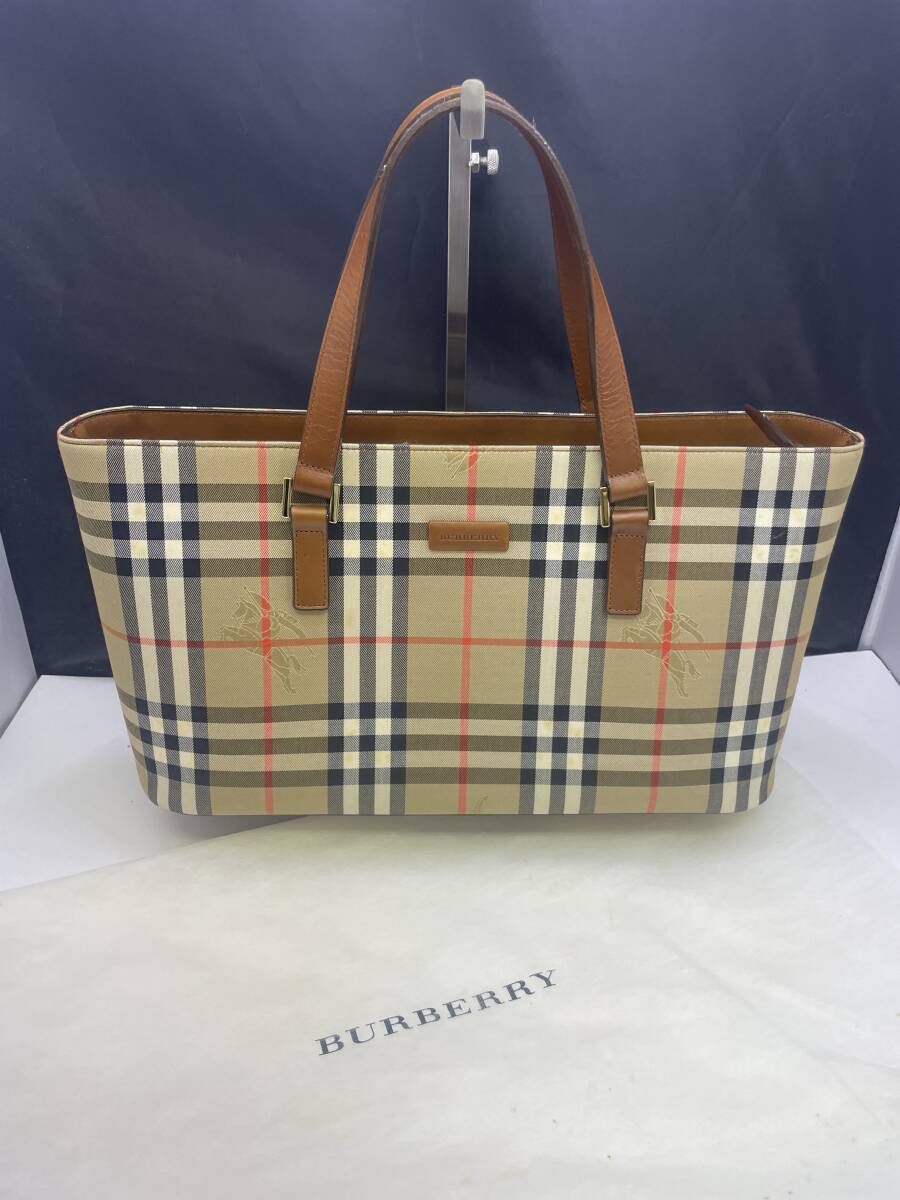 | バーバリー■BURBERRY ヘイマーケットチェック ハンド バッグ キャンバス レザー ベージュ ブラウン■中古品 | |