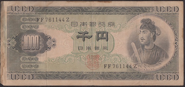 日本銀行券B号千円1枚売り。