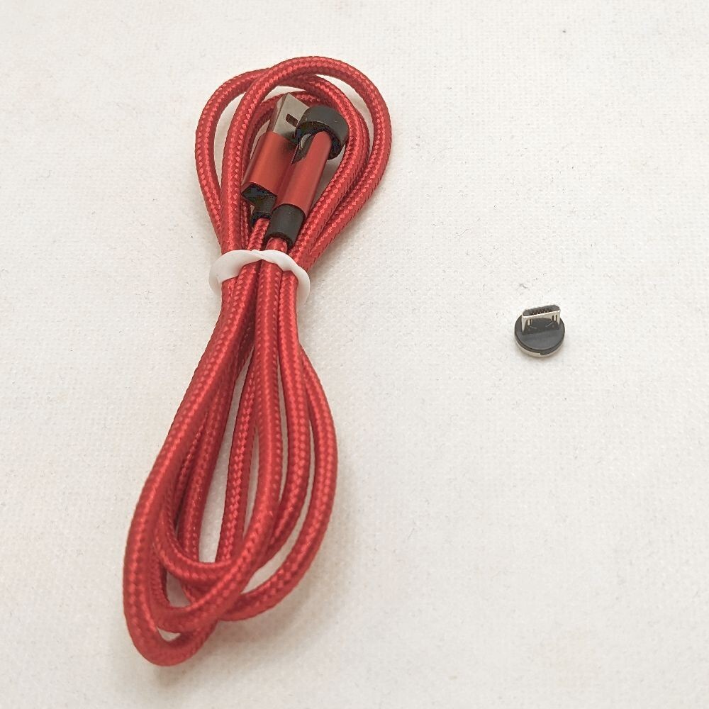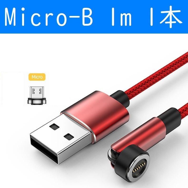 Micro-B 1m赤色1本曲るマグネット磁石式USB充電通信ケーブル
