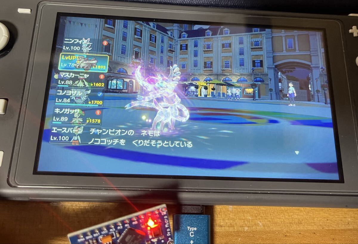 先頭にフェアリースキン・ニンヒィアLv 100、先頭技がハイパーボイス(フェアリーテラスタル・厳選でさらに安定化します)状態で受付の前に立ちコチラのマイコンを繋げます。