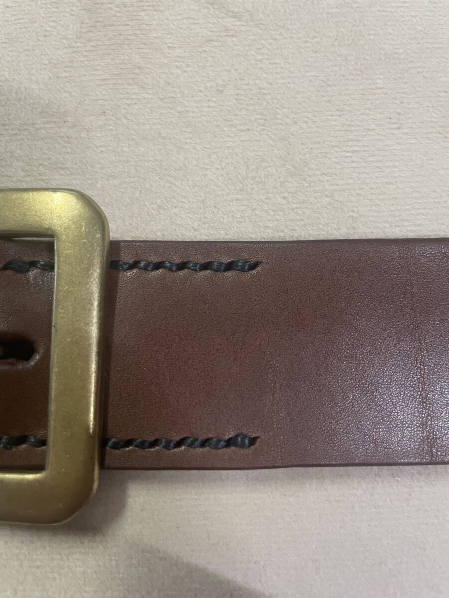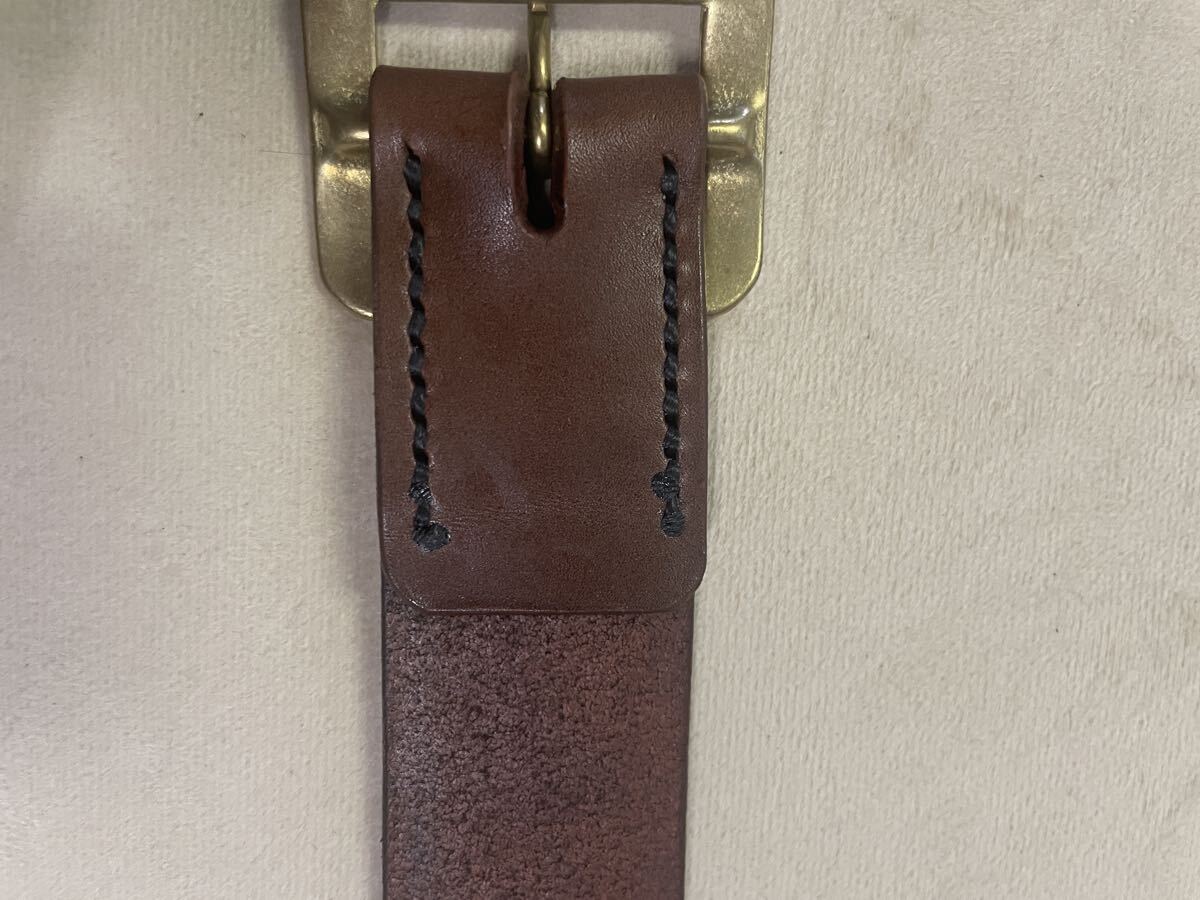 国産タンニンなめし牛革のベンズ部と真鍮製バックル、シニュー糸で手縫いで縫い合わせてます。
