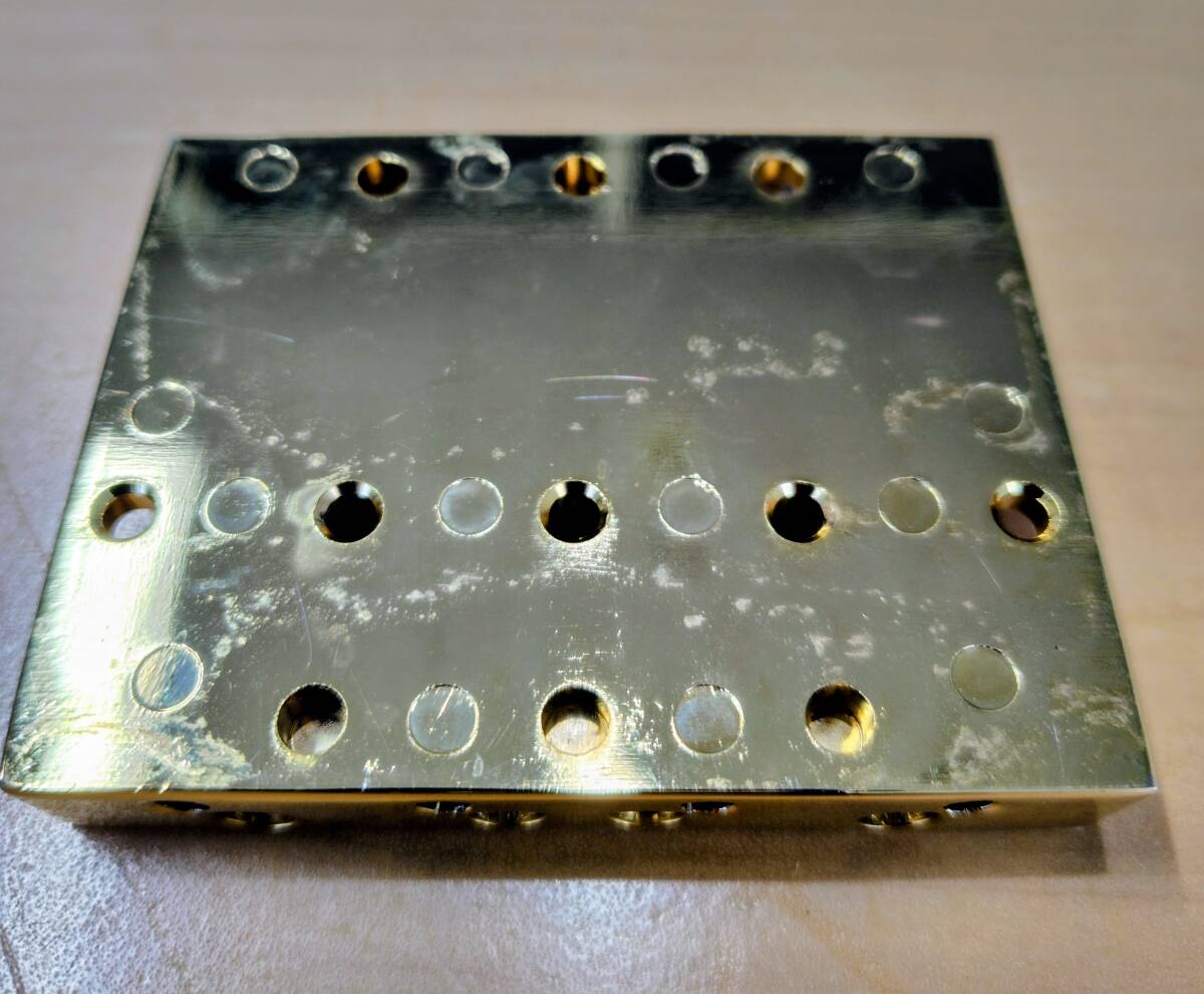 ご覧いただきありがとうございます。機材整理の為出品します。出品するものは、Allparts  4-String Omega Bass Bridge Gold Grooved Saddlesオメガ・ベースブリッジ・ゴールド となります。BADASS BASSⅡ のクローンと言われており、BADASS BASSⅡ の製造が中止されている時期に生産されたものです。短期間使用しておりましたが、長期保存状態となっていたものです。目立つ傷もない状態です(写真参照)。ボディに取り付けるネジ、六角レンチ付属です。安価にてスタートさせていただきますので、ノークレーム・ノーリターンにてお願い致します。