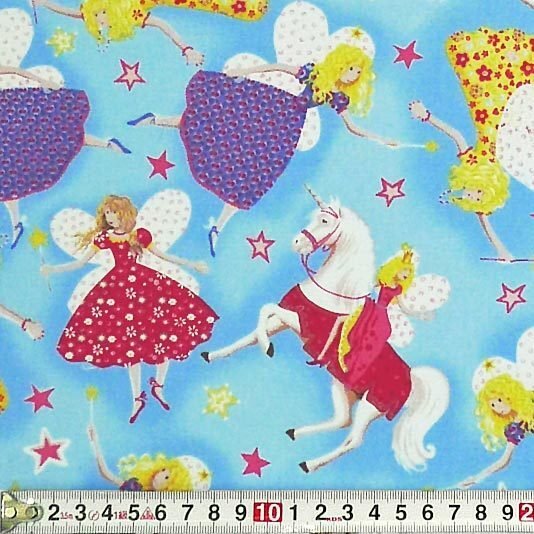 キレイなドレスを纒った妖精達を生地全体に散らばらせています。