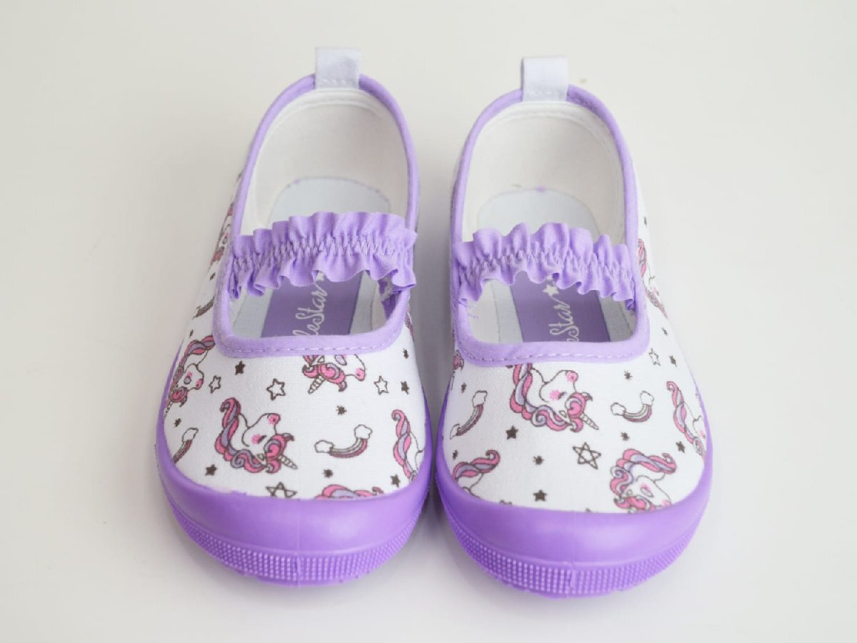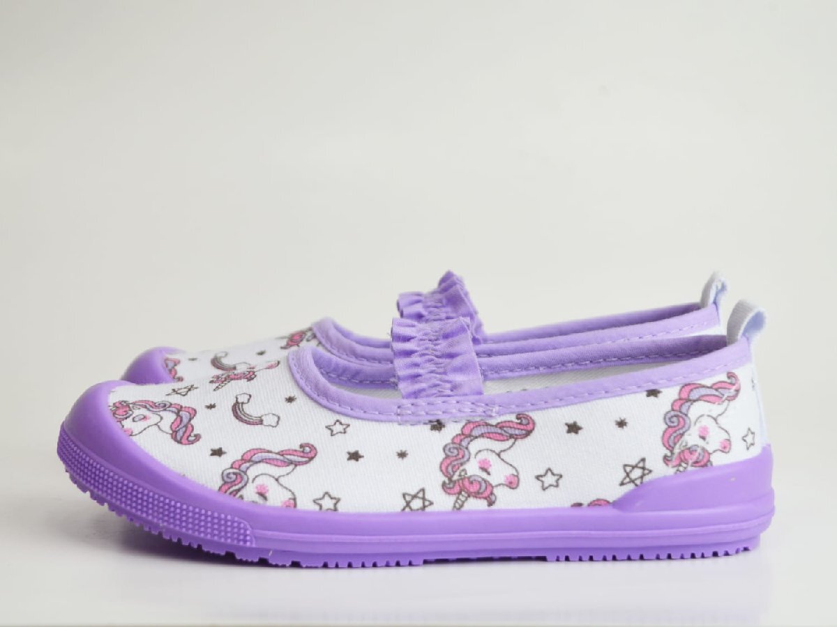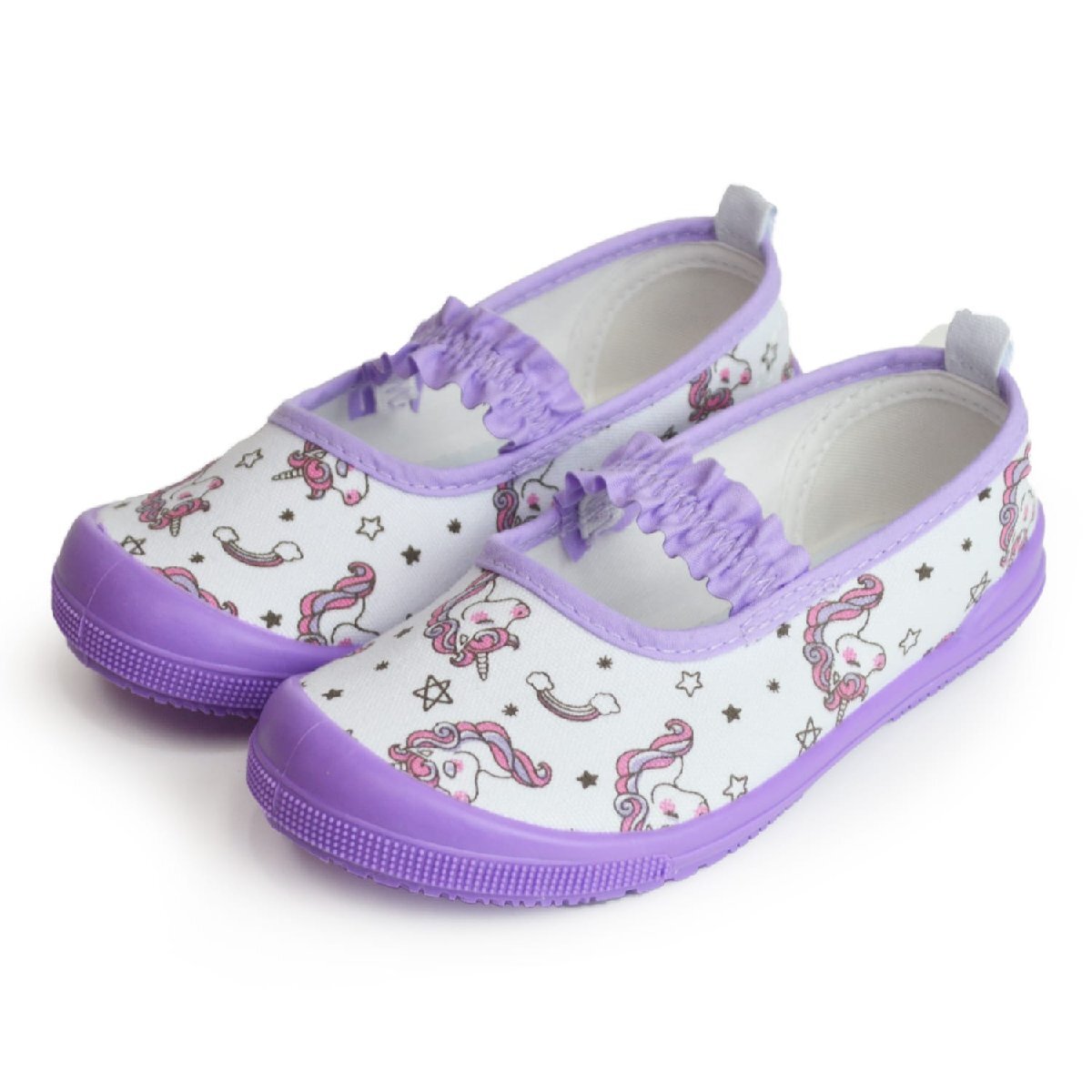 在庫処分■新品【16cm】上履き キッズ シューズ 上靴 ユニコーン パープル フリル ギャザー 軽量 幼稚園 学校 子供靴 女の子