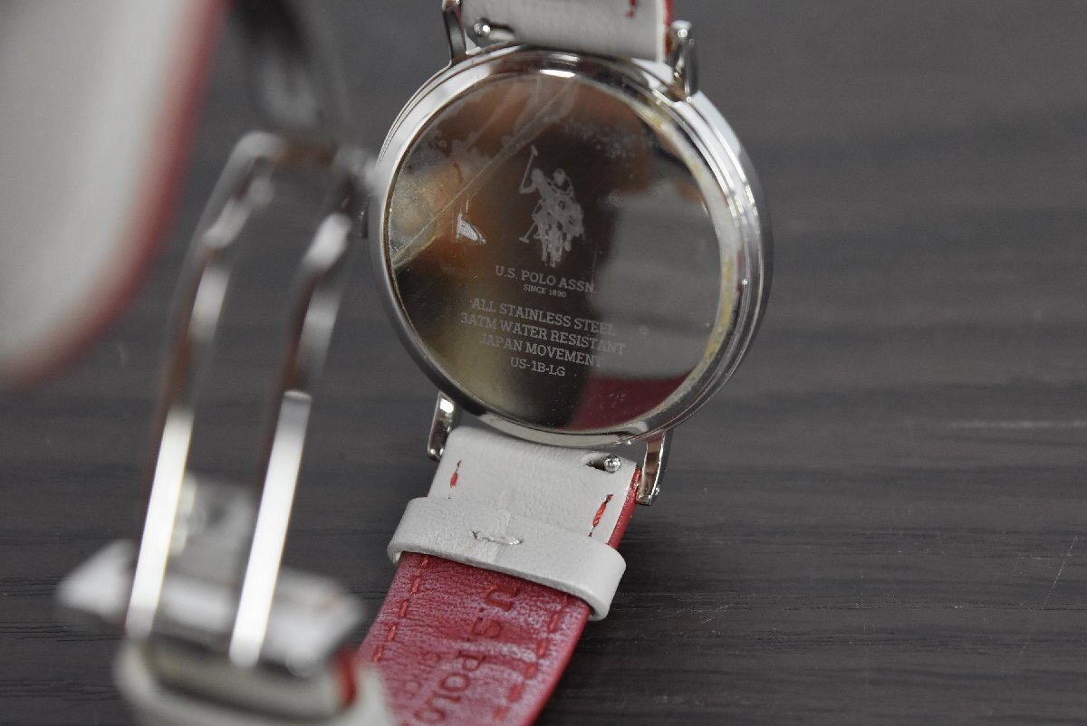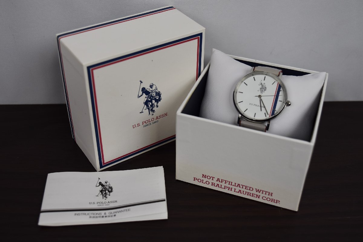 B-504 中古 ジャンク品 U.S POLO ASSN ポロ 腕時計 US-1B-LG シルバー ホワイト 箱付き メンズ ウォッチ クオーツ アクセサリー