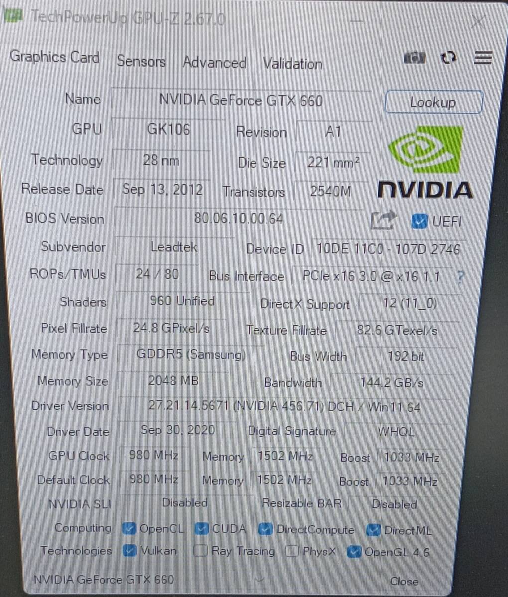 【中古パーツ】NVIDIA GeForce GTX 660 2G グラフィックボード/ビデオカード PCI-E HDMI/DVI/DP■K1545-3
