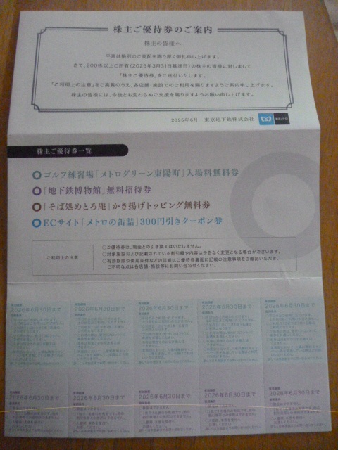 東京地下鉄株式会社 株主優待乗車証 東京メトロ線全線 75枚+その他無料券・クーポン券