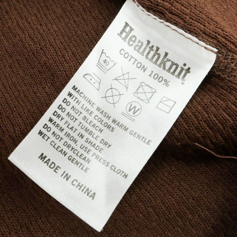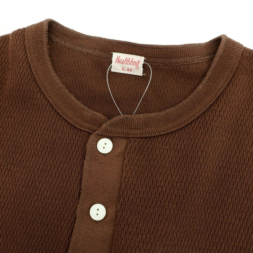 【中古】ヘルスニット Healthknit BEAMS PLUS別注 コットン ヘンリーネック 長袖Tシャツ ブラウン【サイズL/42】