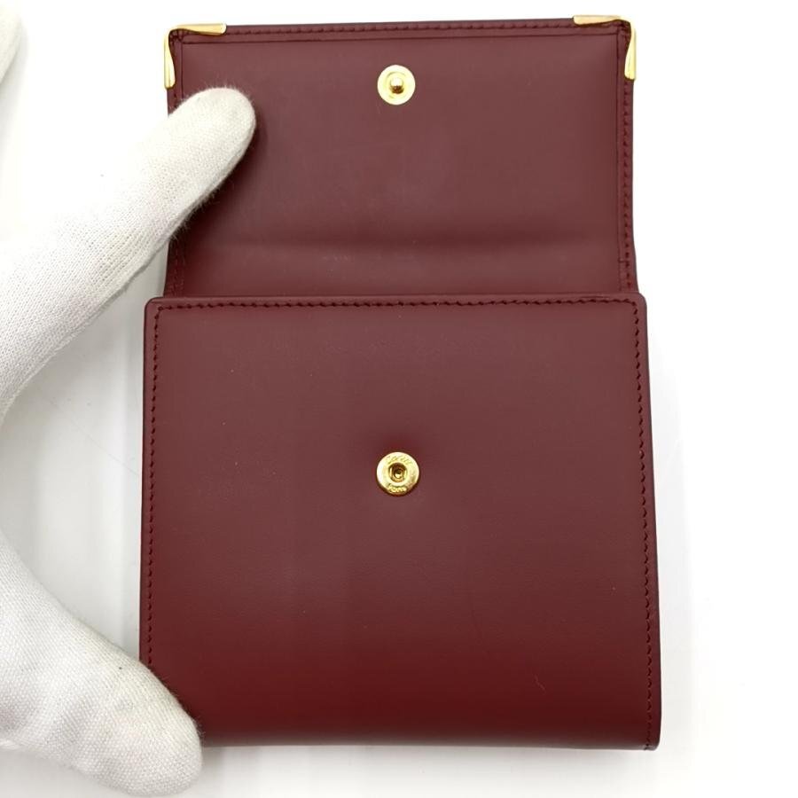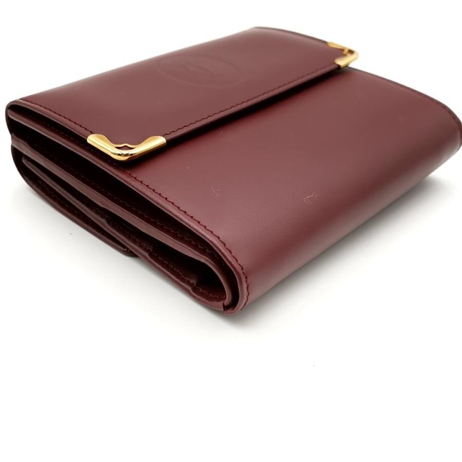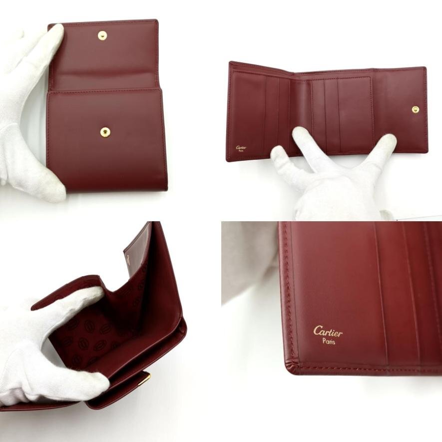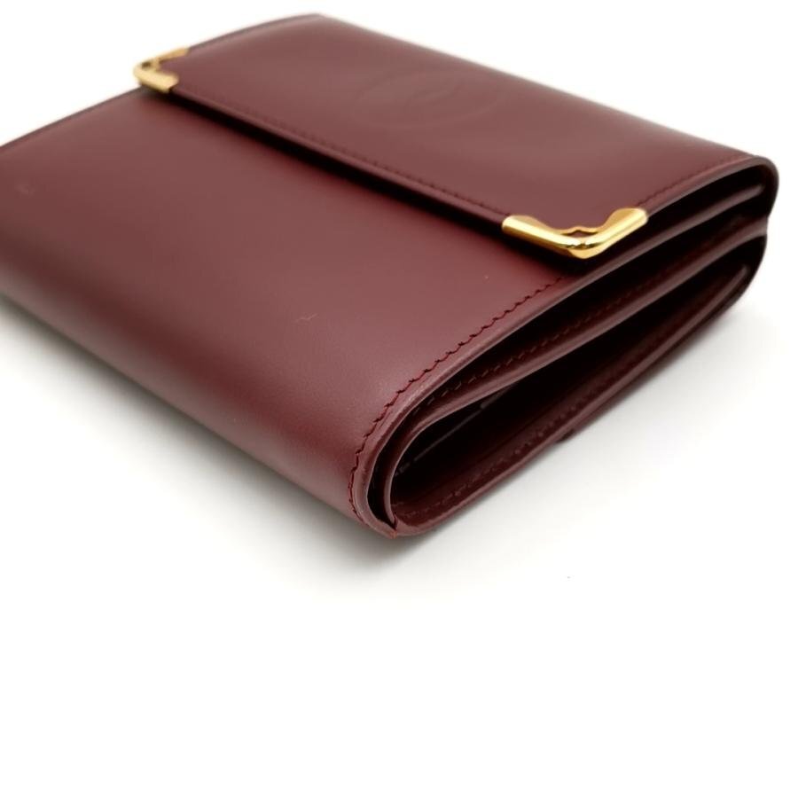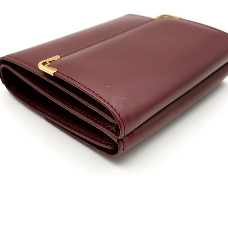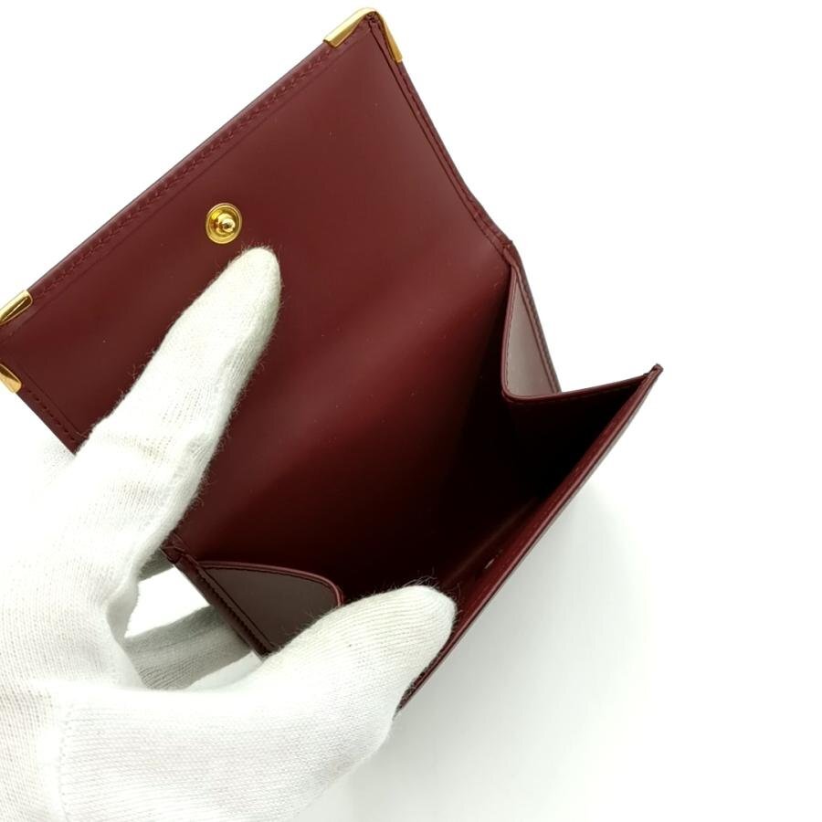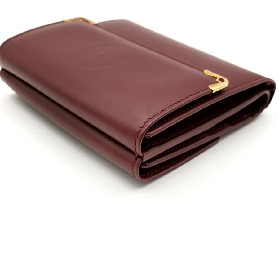 送料無料 超美品 カルティエ Catier 財布 三つ折り ミニ財布 マストライン レザー ボルドー系 レディース