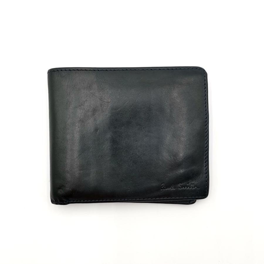 送料無料 ポールスミス Paul Smith 財布 二つ折り ミディアムウォレット レザー スペイン製 黒 ブラック系 メンズ