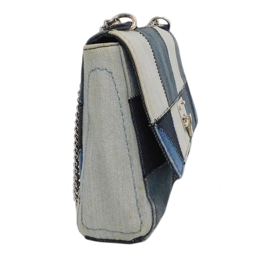 1円■ 美品/ディーゼル/ショルダーバッグ/ブルー系/パッチワーク/斜め掛け/チェーン/DIESEL ■E.Aup.pS-22[中古]