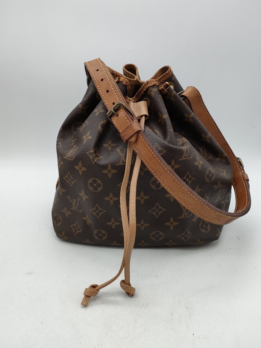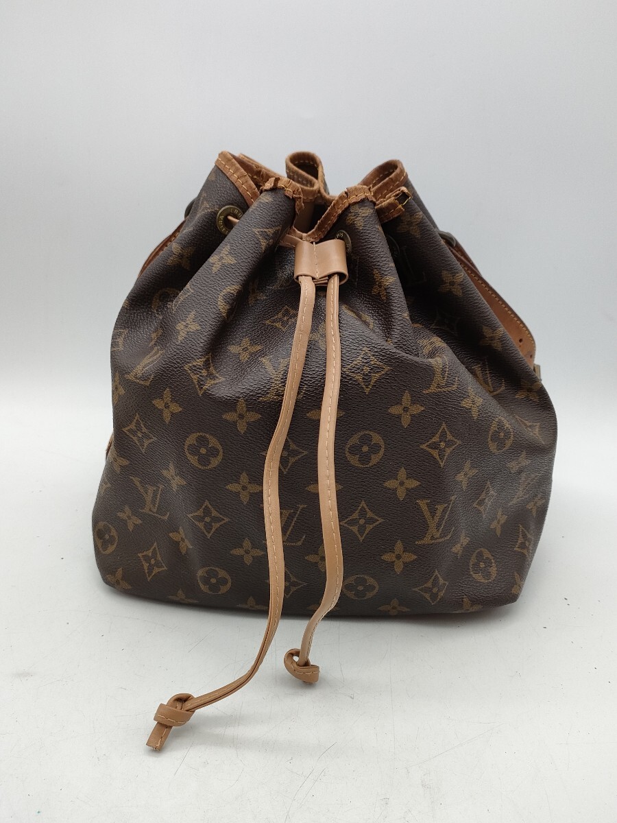 1円〜 LOUIS VUITTON ルイヴィトン モノグラム プチノエ ショルダーバッグ 巾着型 ブラウンカラー 茶系 肩掛け 鞄 バッグ 現状品