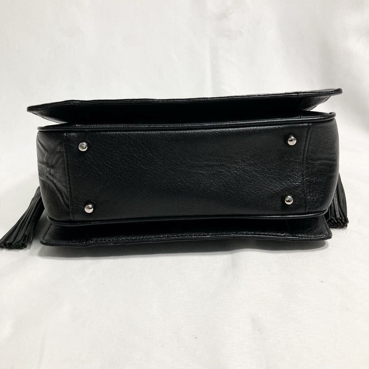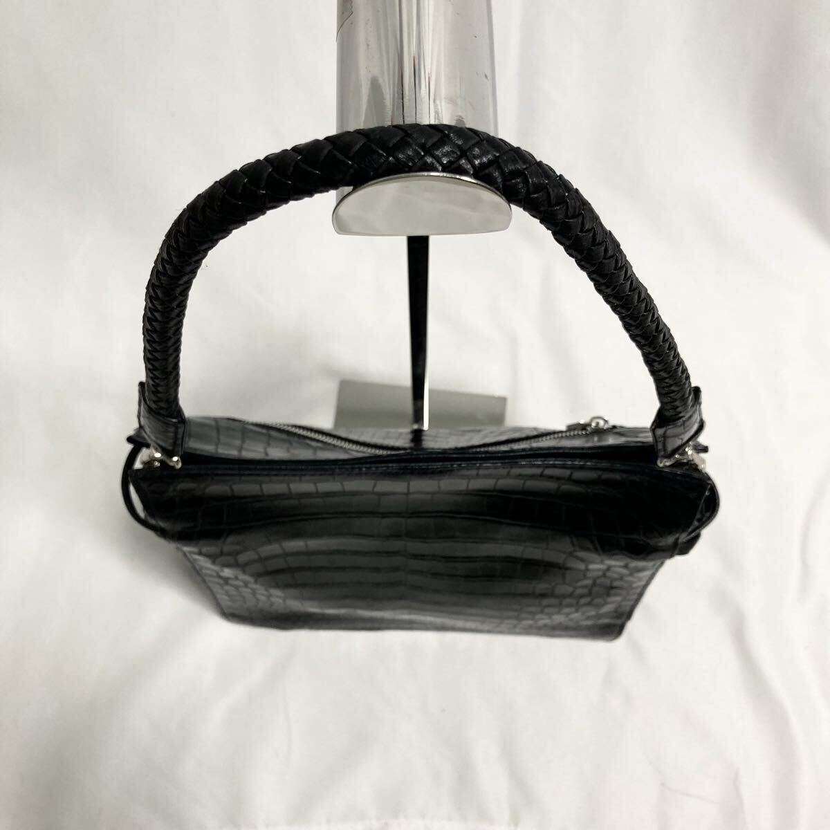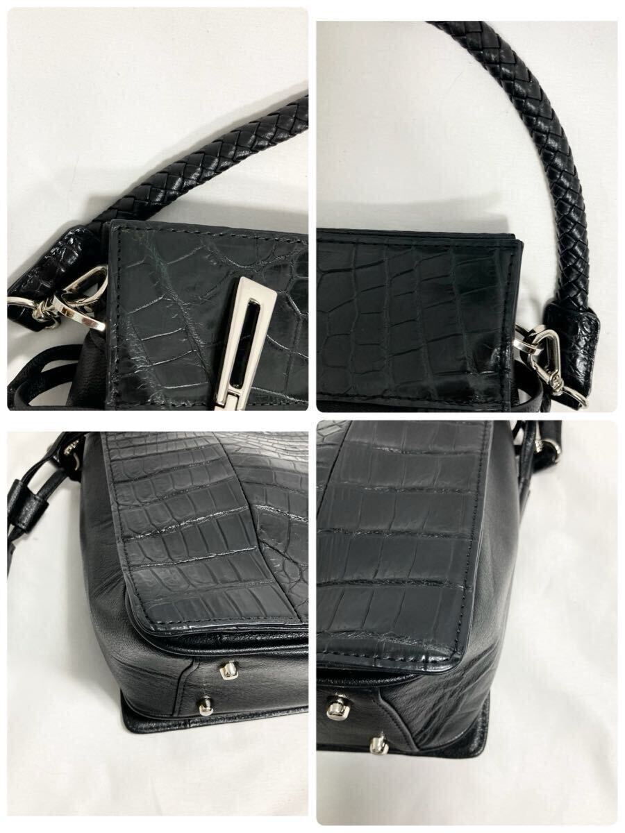 1円 極上品 ハンドバッグ ショルダーバッグ クロコダイル クロコ マットクロコ センター取り タッセル フリンジ 編み込み ブラック 大容量