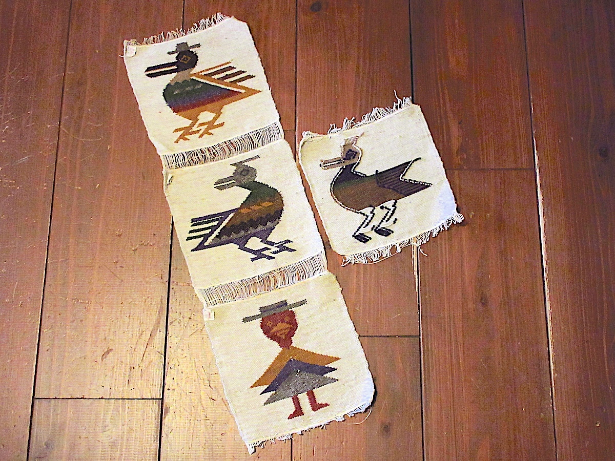 ビンテージ●エクアドルウールタペストリー4点セット●250929z6-sign鳥バードアニマル壁掛けインテリア雑貨ウォールデコ