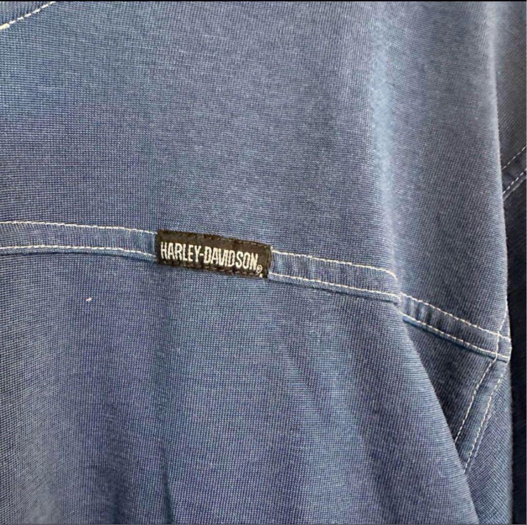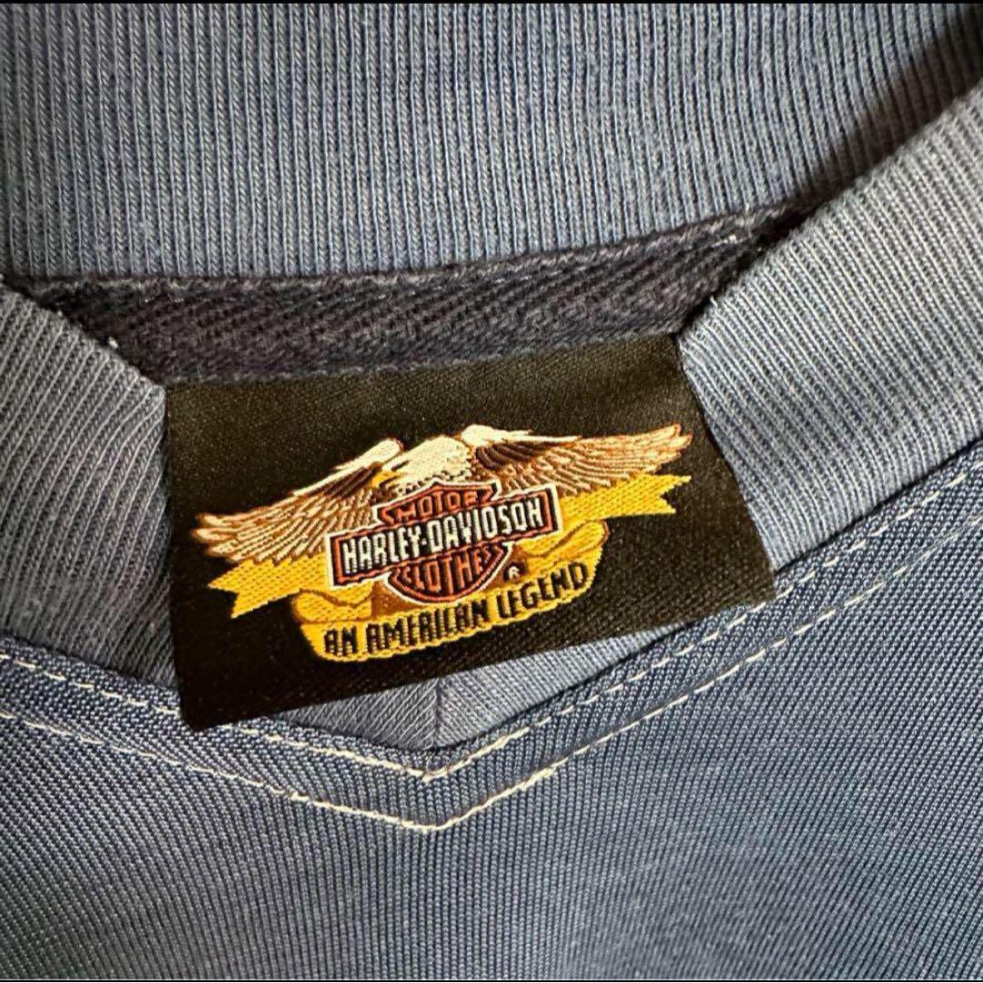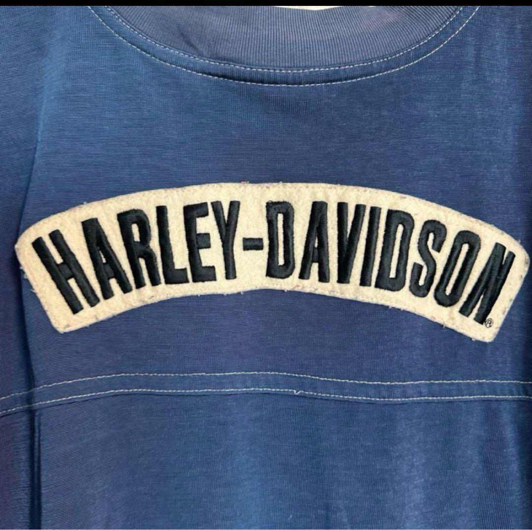 【希少】ハーレーダビッドソン Harley Davidson メンズ 半袖 Tシャツ Mサイズ ネイビー Vネック 青 ワッペンロゴ ヴィンテージ 古着