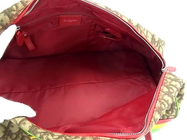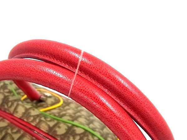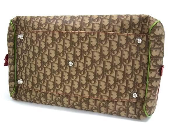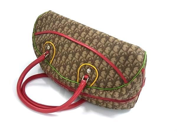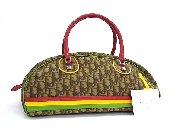 1円 ■美品■ ChristianDior クリスチャンディオール トロッター PVC×レザー ハンドバッグ ボストン ブラウン系×マルチカラー FP7050