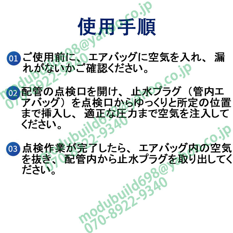 2.閉水用エアバッグは、対応する管径に合ったサイズをご使用ください。サイズの異なる製品を無理に使用すると、効果を発揮できない場合があります。