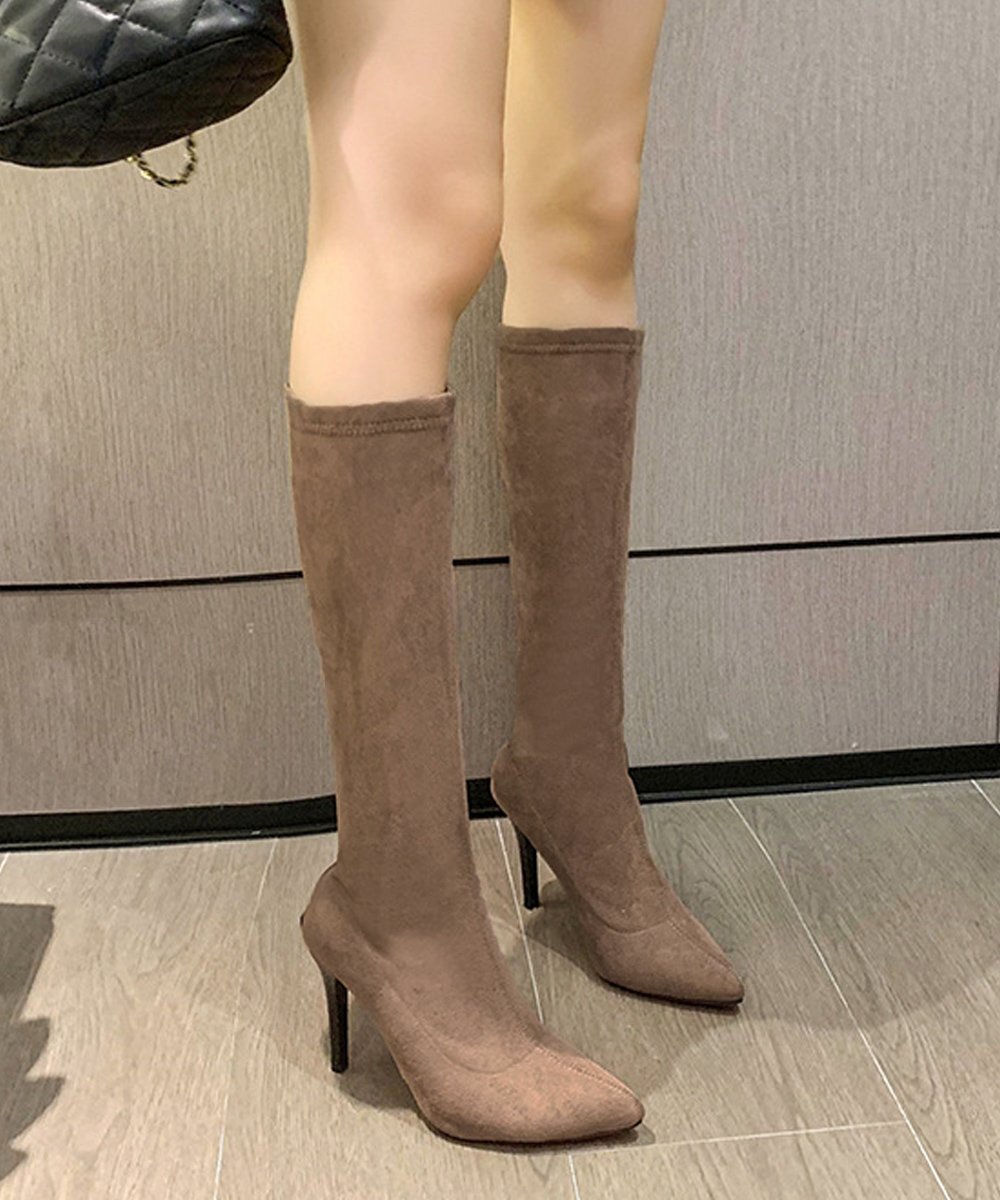 9cmハイヒール 美脚ブーツ 脚長 膝下 スエード調 大人 オルチャン きれいめ シンプル 秋冬 人気 韓国