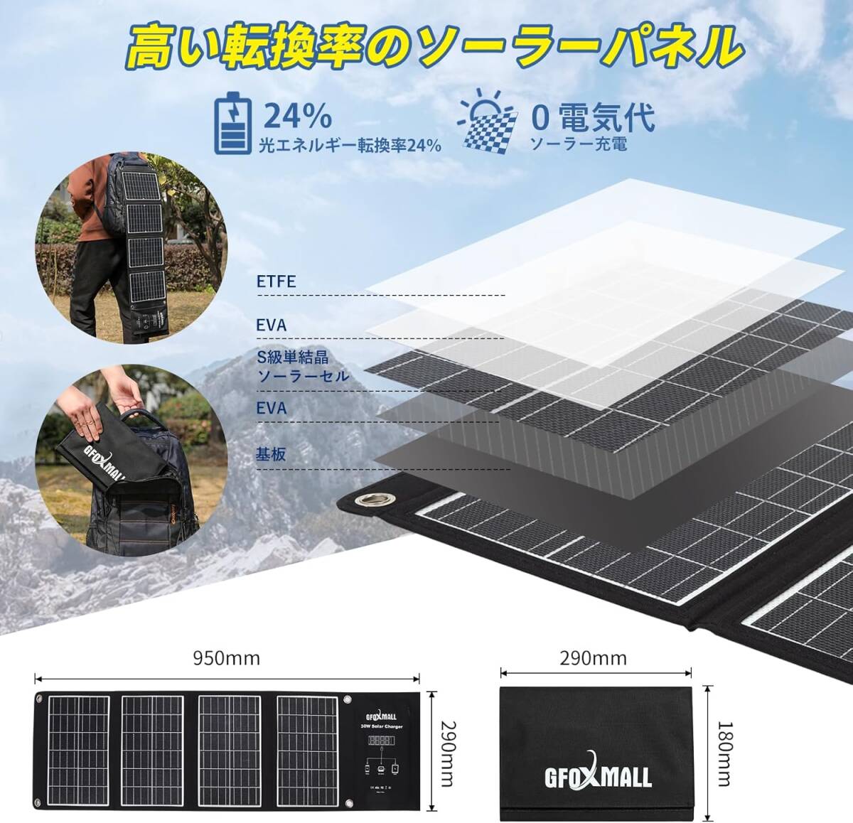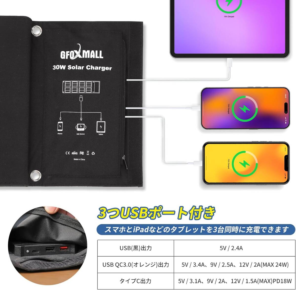 Gfoxmall 30W ソーラーパネル 小型ソーラーチャージャー QC3.0急速充電 PD18W 3USBボート 薄型超軽量ETFE材質防水 防災グッズ