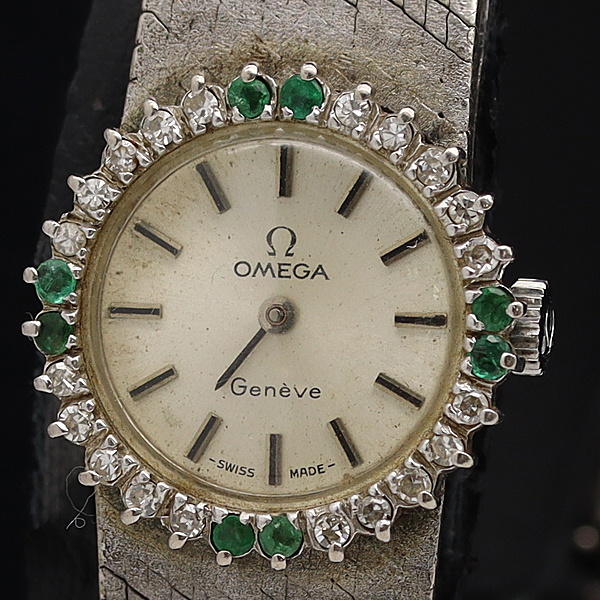 1円 オメガ ジュネーブ 18K 21.6g 手巻 シルバー文字盤 レディース腕時計 3518400 9DIT SMZ