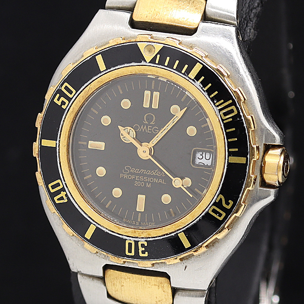 1円 保付 稼働 オメガ シーマスター QZ ブラック文字盤 レディース腕時計 0037400 9BJT IGR
